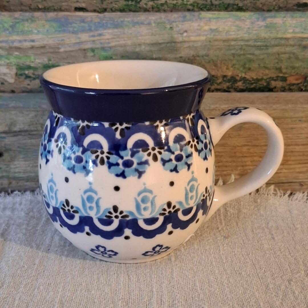 Deze bolmok, met een speciaal decor, ligt heerlijk in de hand en past goed onder Senseo- & Nespresso-apparaten.