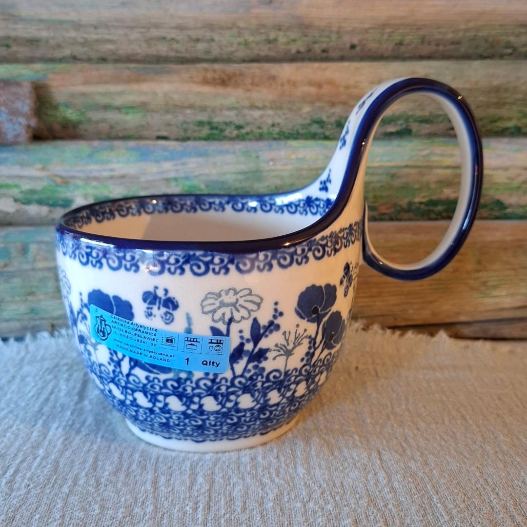 De “waterscoop”, heeft zijn naam te danken aan de prachtige vorm waarmee oorspronkelijk water werd geschept en is echt multifunctioneel inzetbaar. Bv als soepkom met het handige grote oor, jus- en sauskom, het presenteren van nootjes en tapas maar ook voor nagerechten en fruit.