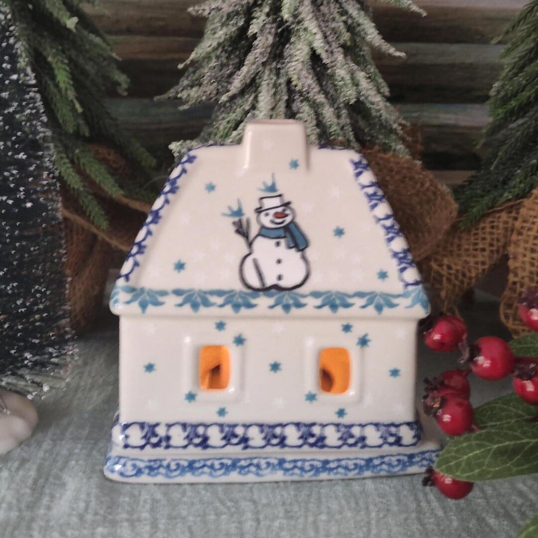 CA A07-x Bunzlau Kersthuisje Sneeuwpop