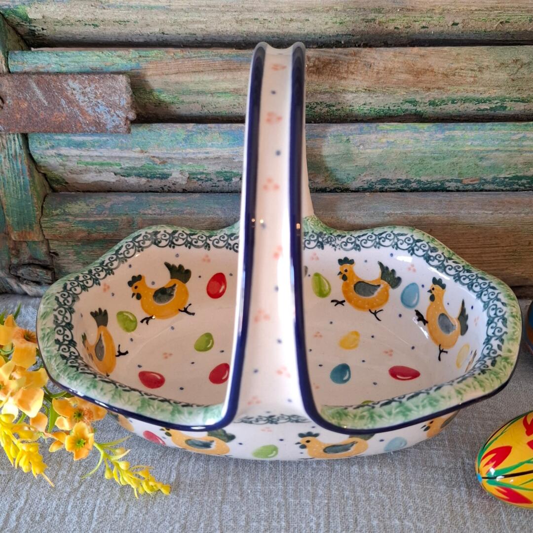 Prachtig mandje met veel mogelijkheden. Voor het presenteren van bonbons, nootjes, tapas en natuurlijk geweldig met eitjes op de paastafel.