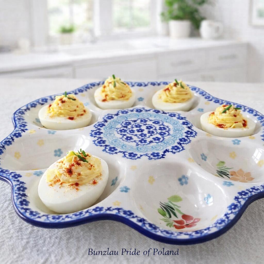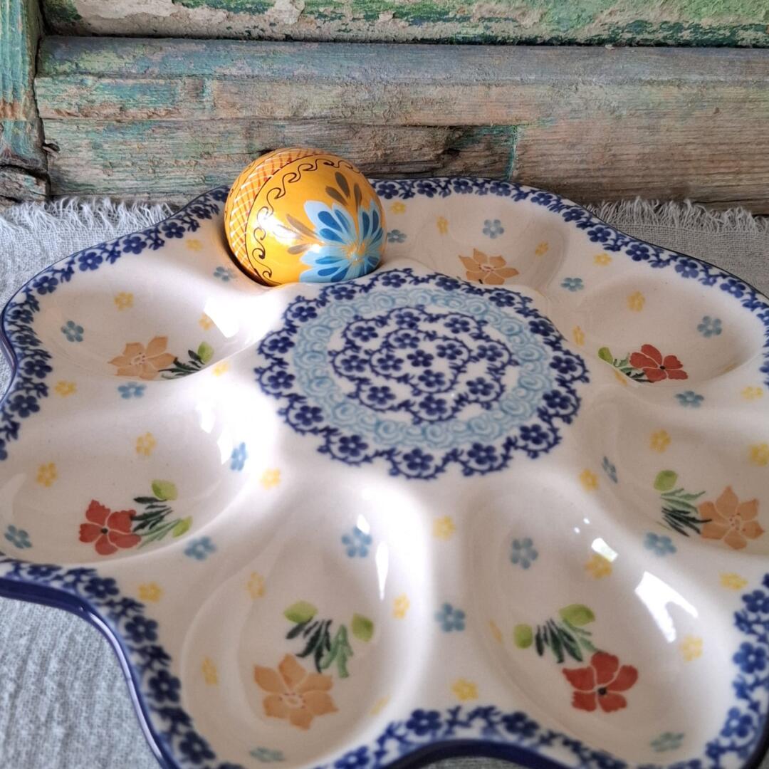 Prachtige schaal voor het presenteren van geverfde of gevulde eieren. Met in het midden een plateautje voor een bakje met bv dipsaus.