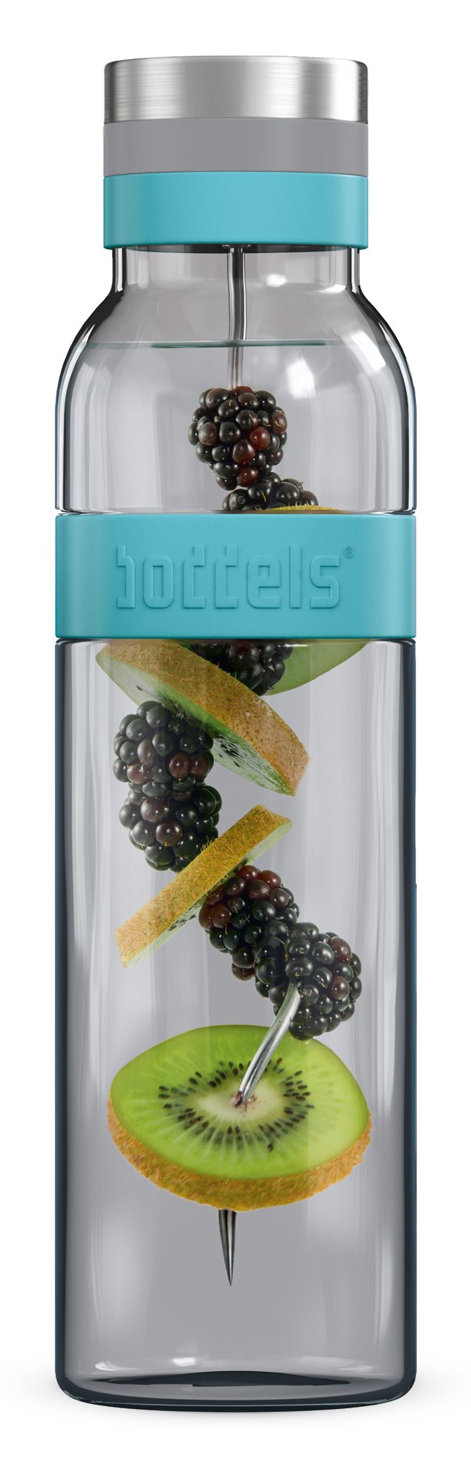 Schuif je favoriete fruit, groente, kruiden of andere smaakmaker aan de spiraal en vul de fles met water.