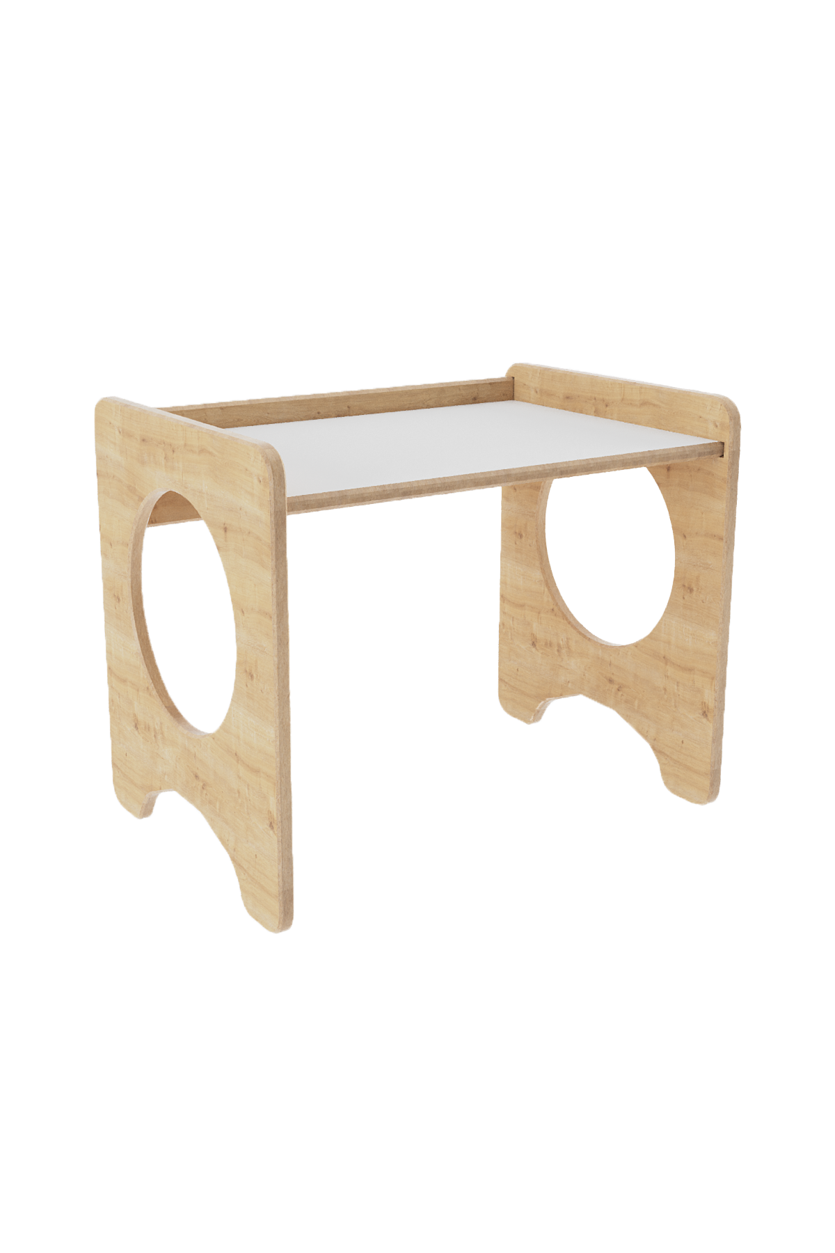 Dit product is volledig gemaakt van 18 mm dik MDF-materiaal van de hoogste kwaliteit (E1-standaard) en bevat geen schadelijke stoffen. De producten zijn ongeschilderd en er zijn geen schadelijke chemicaliën gebruikt tijdens de productie. De randen zijn van onbehandeld MDF.Dit CNC-gesneden product heeft een uniek ontwerp met een ovale vorm, wat zorgt voor veilige gebruik voor kinderen. Dankzij de ovale vorm en het frezen zijn alle scherpe randen verwijderd. Het product wordt als bouwpakket geleverd en de montage is zeer eenvoudig gemaakt. Met behulp van een accuboormachine en schroevendraaier kan het gemakkelijk in elkaar worden gezet.Dankzij het inschuifsysteem heeft het een hoge draagkracht. De set bevat 1 tafel en 1 stoel.