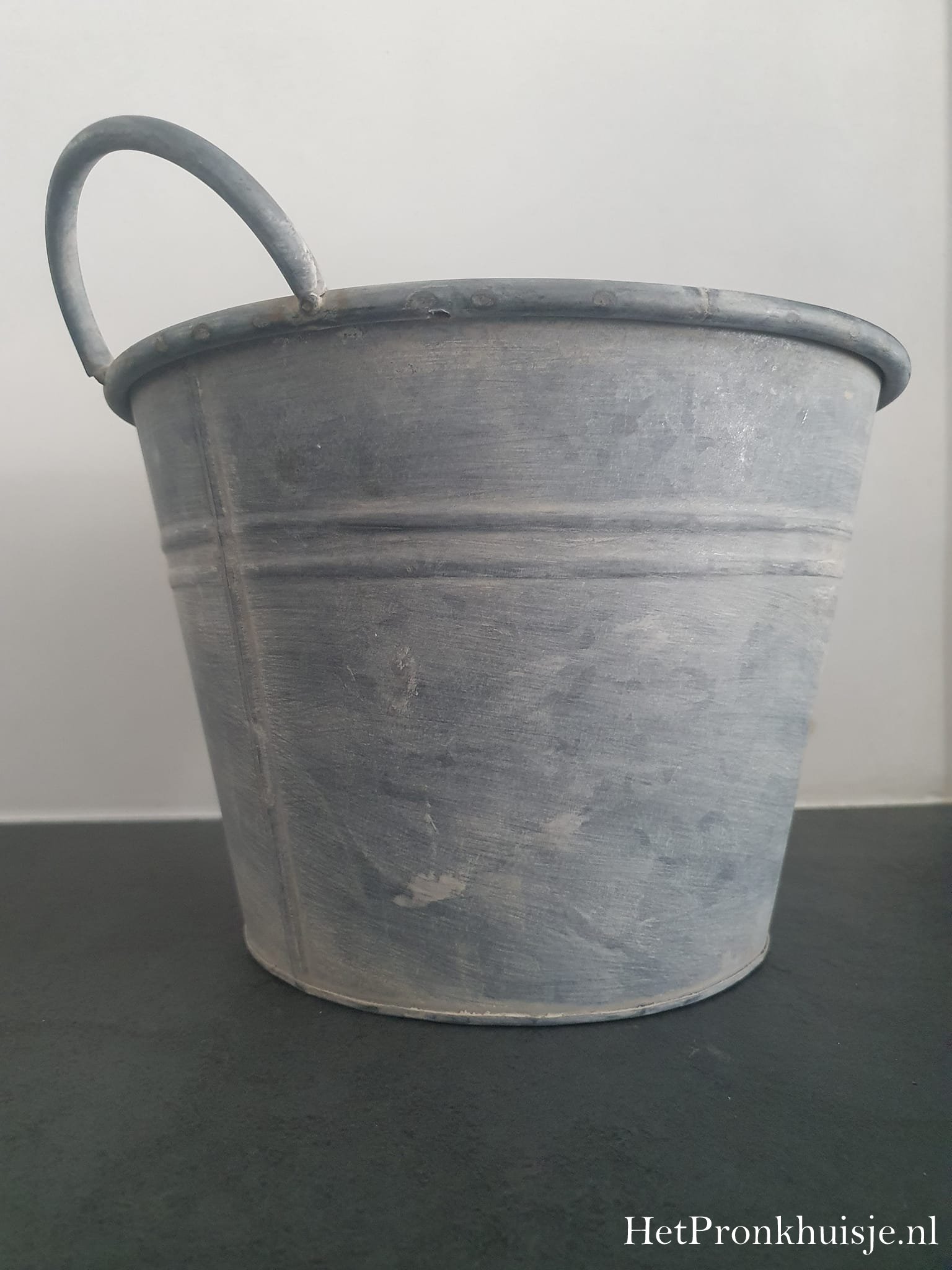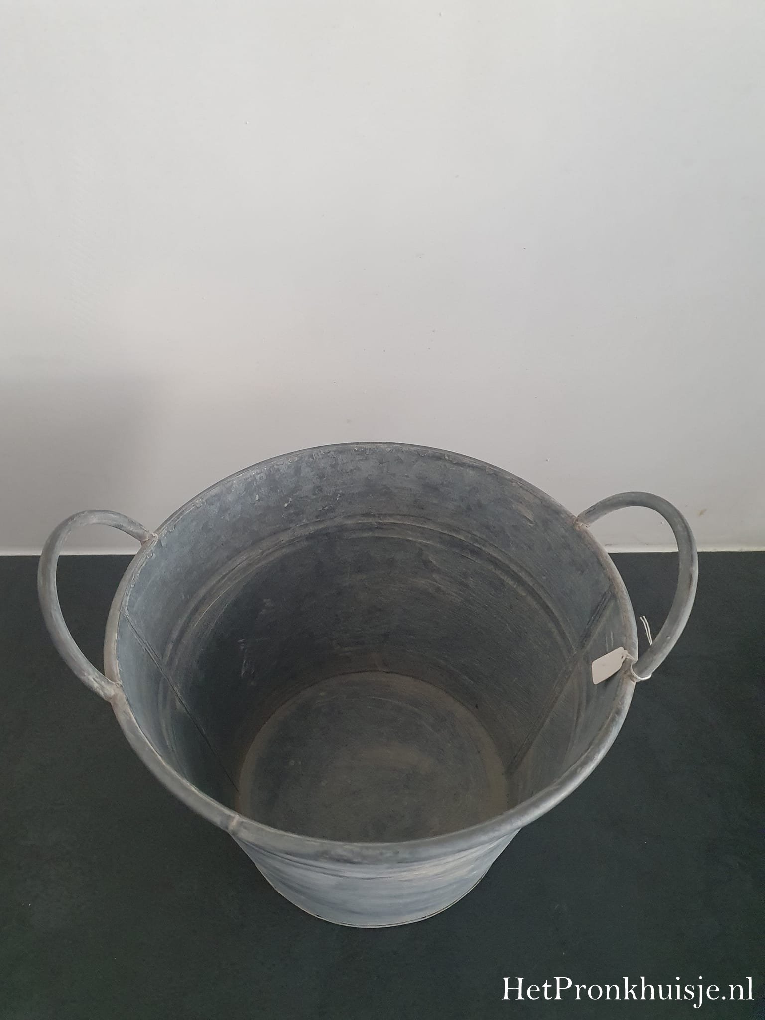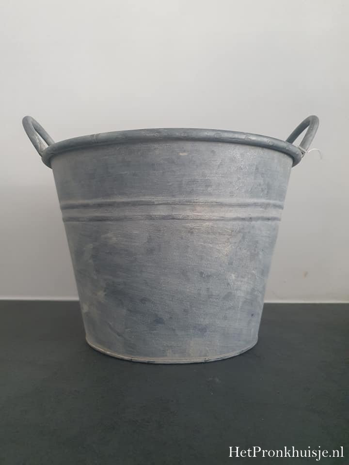 Sfeervolle zinken pot met greepjes.