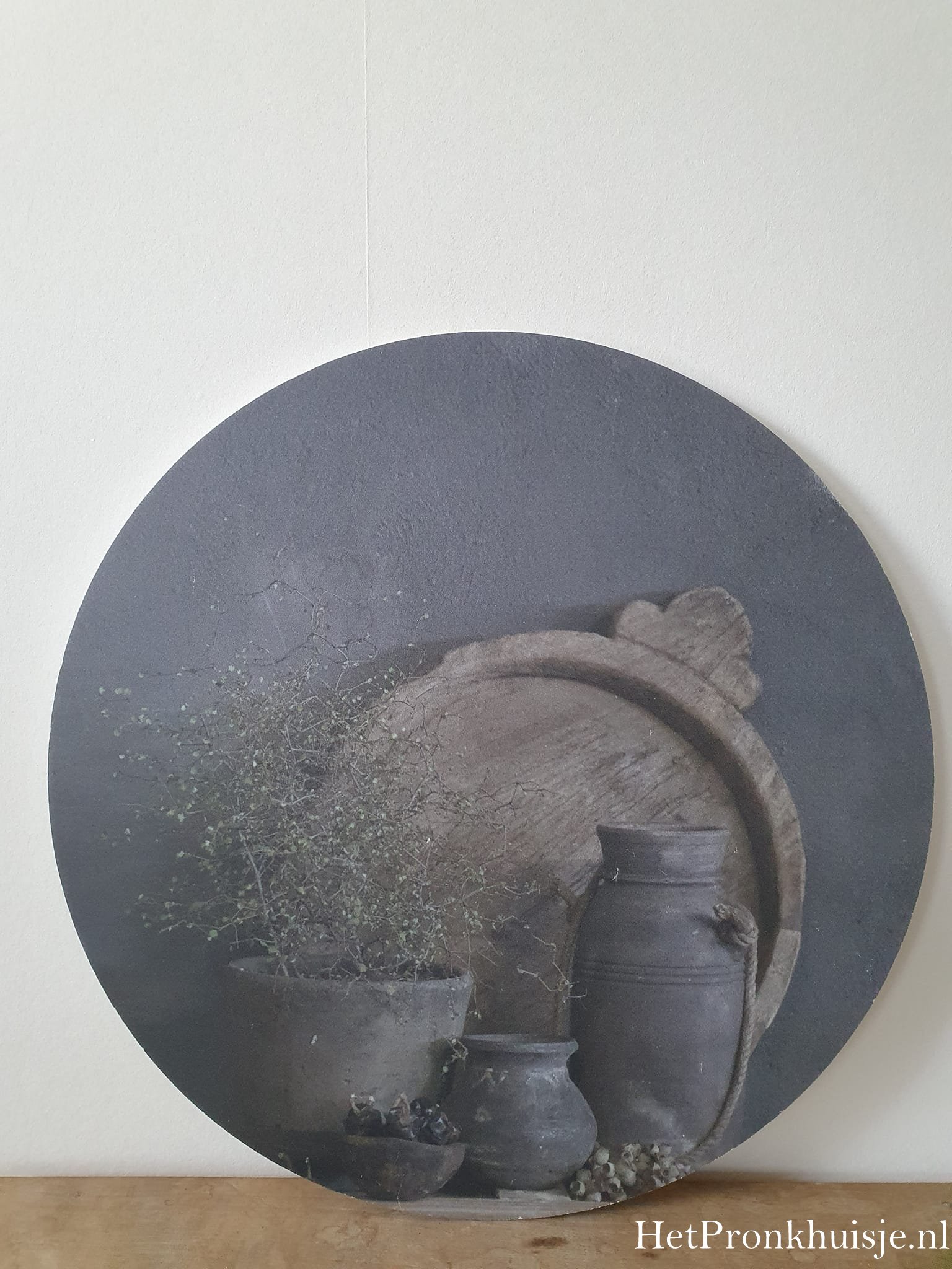 Muurcirkel. Schaal met potten.