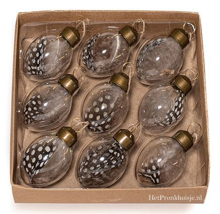 Glazen ei met veren. Set 9 stuks