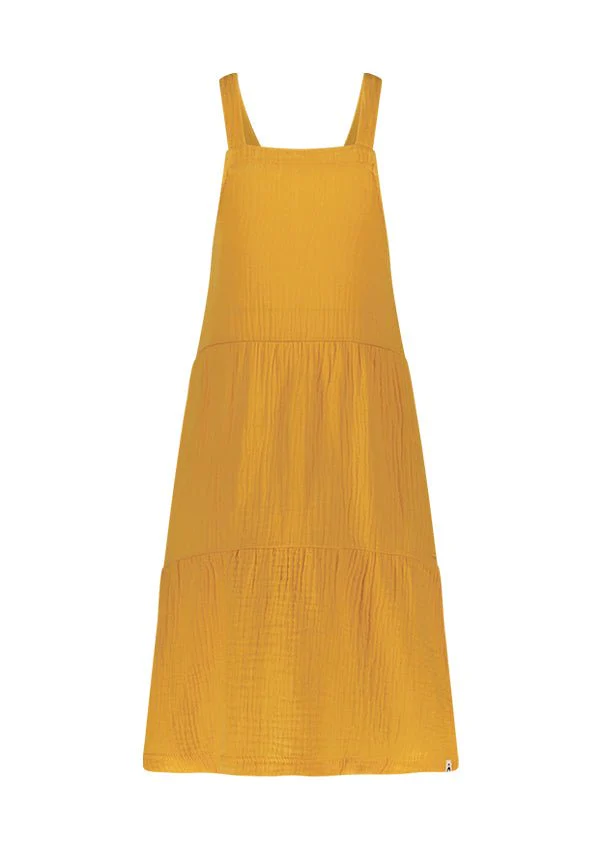 Wist je dat deze mooie gele Anne jurk een echte alleskunner is? Met de soepelvallende mousseline stof zwiert deze jurk in het rond. Je kunt de bandjes op verschillende manieren strikken. Gaat jouw voorkeur uit naar een grote strik in de nek of kruis je liever de banden en laat de strik op de rug pronken? Deze lange jurk is het perfecte item voor een heerlijke warme zomer dag!