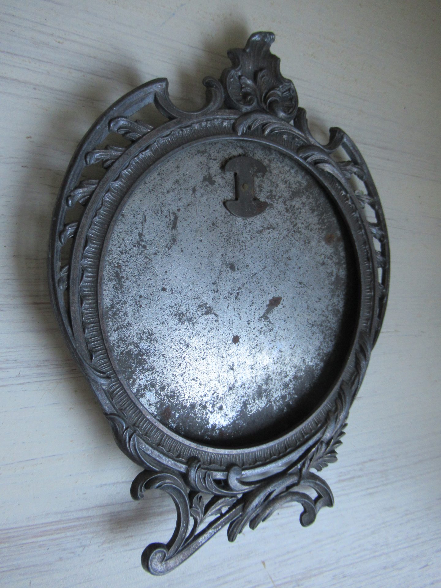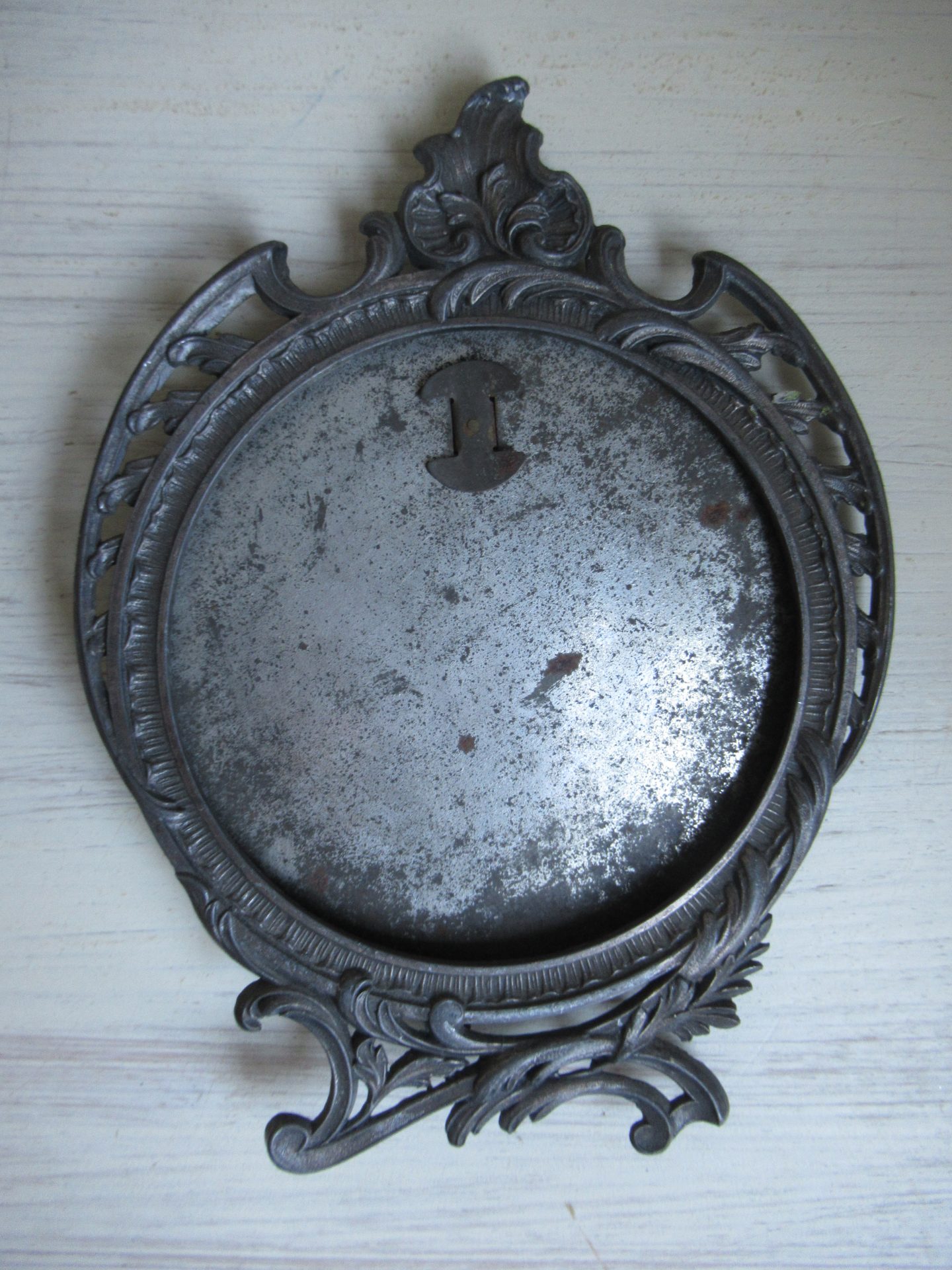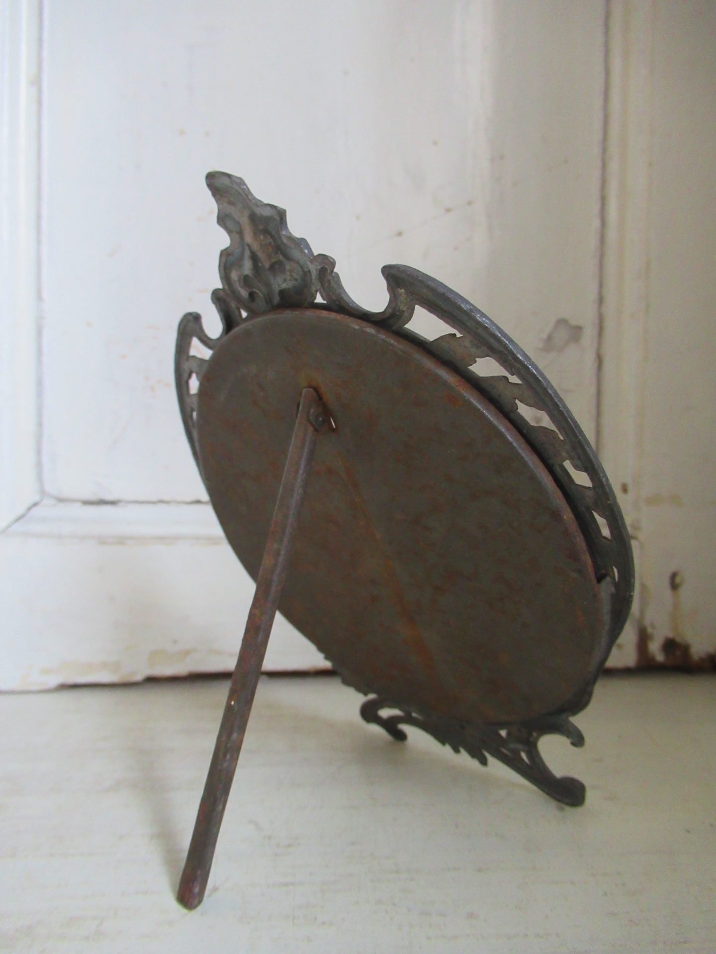 antiek Frans fotolijstje, het glas ontbreekt (17 bij 13 cm, ruimte voor afbeelding doorsnede 10 cm)