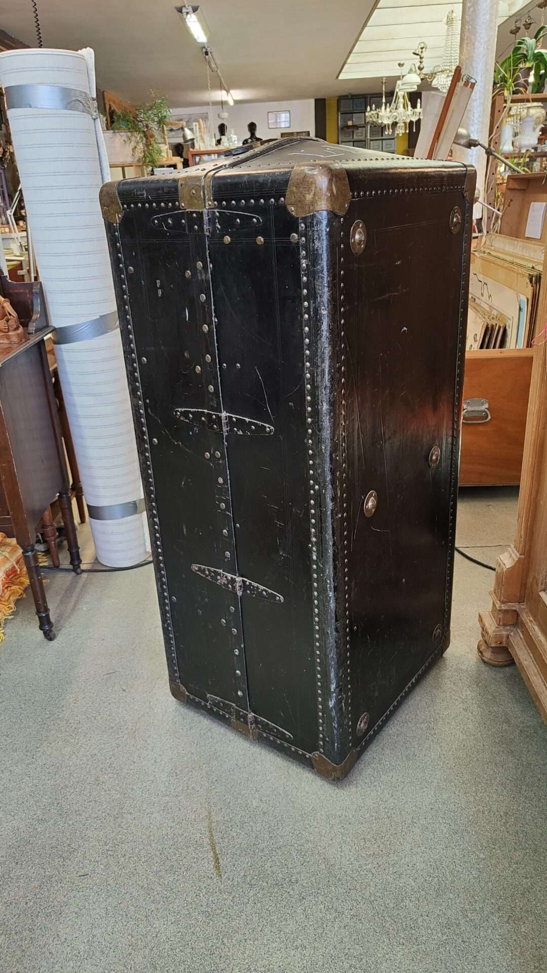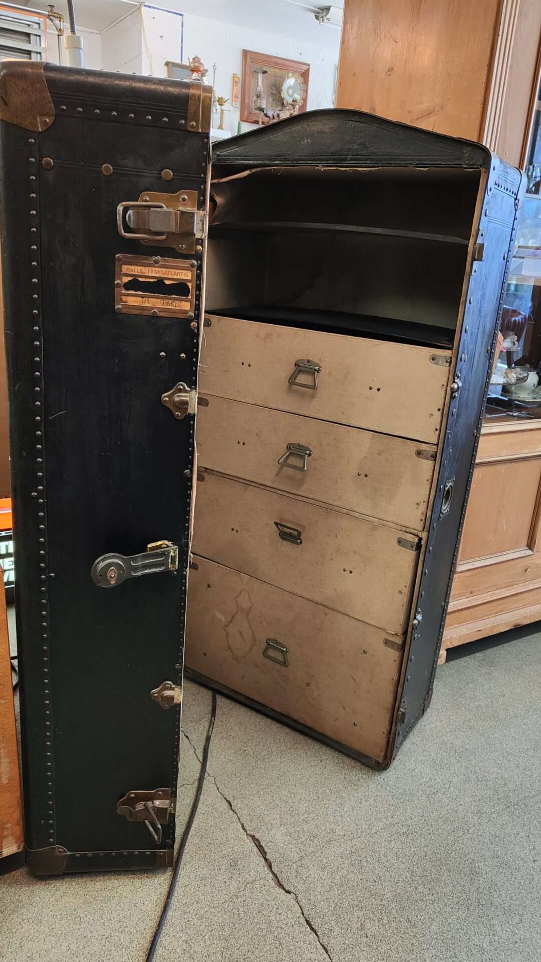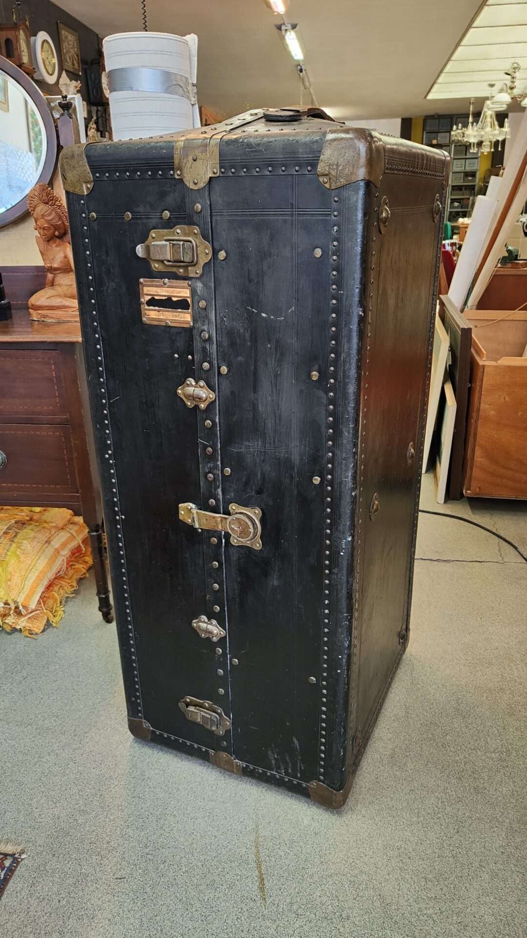 Antieke reis-/garderobekoffer uit eind 19e eeuw, begin 1900. De koffer werd gebruikt op grote schepen, zoals de Titanic, om de garderobe van de reiziger in te vervoeren.