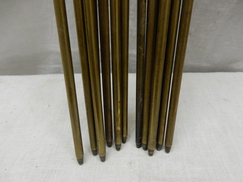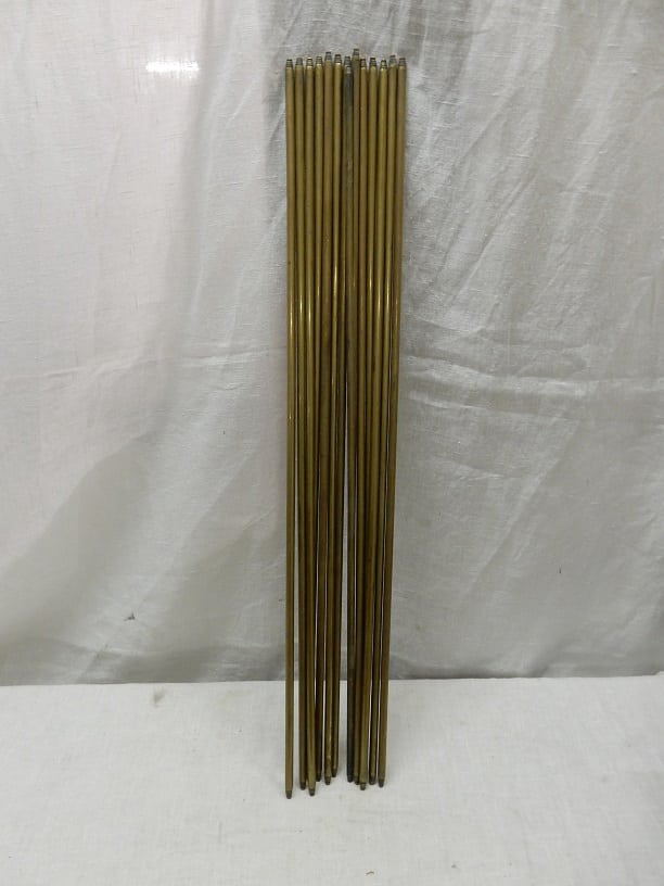 14 antiek koperen traproedes met een lengte van 61 cm en een doorsnede van 0.9 cm.
