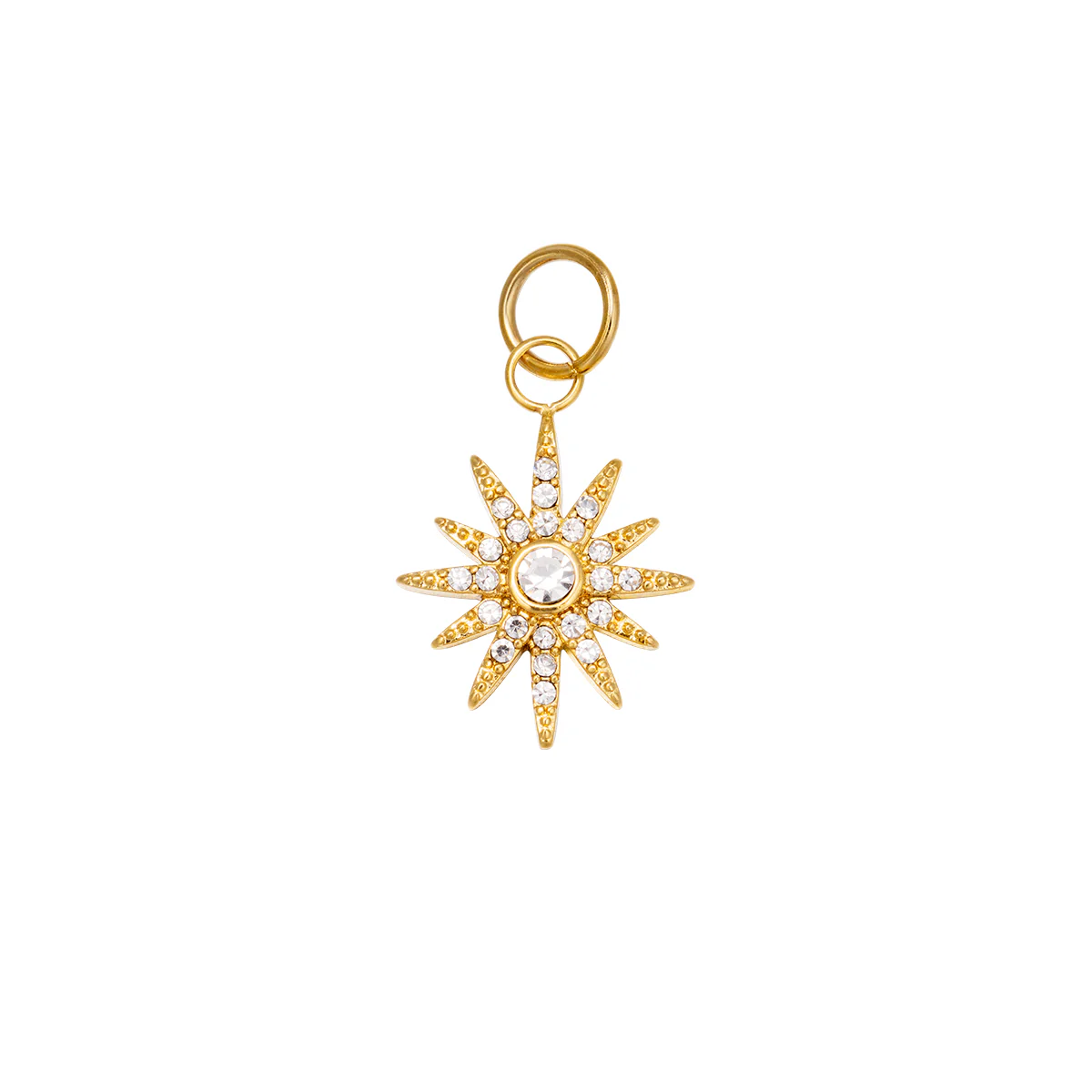 Bedel Sun met zirkonia steentjes. De bedel is leuk om aan je ketting of armband te hangen of kan worden gebruikt om jouw eigen sieraden te maken.