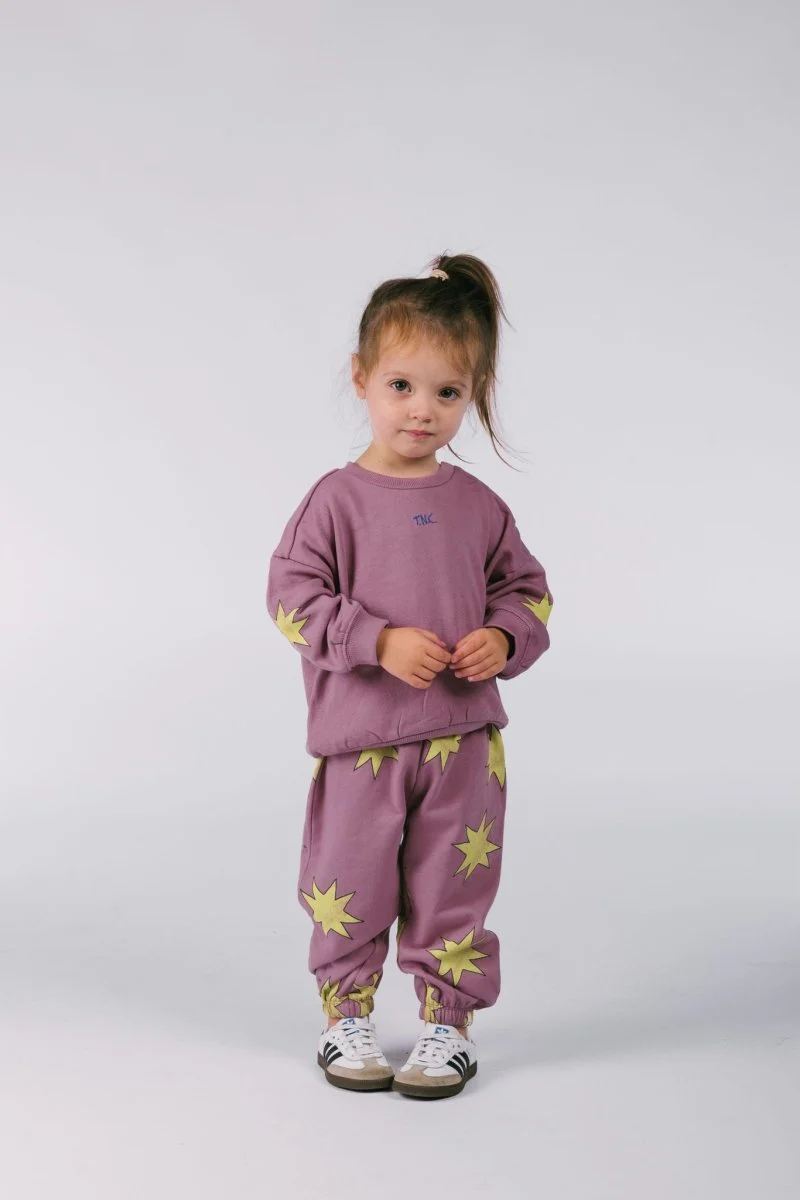 Sweater Billie in deze zachte paarse tint is een echte eyecatcher. De speelse sterrendetails op de mouwen geven de sweater een vrolijke twist, terwijl de comfortabele fit perfect is voor elke dag. Een fijn item om in te spelen, te relaxen en te stralen.