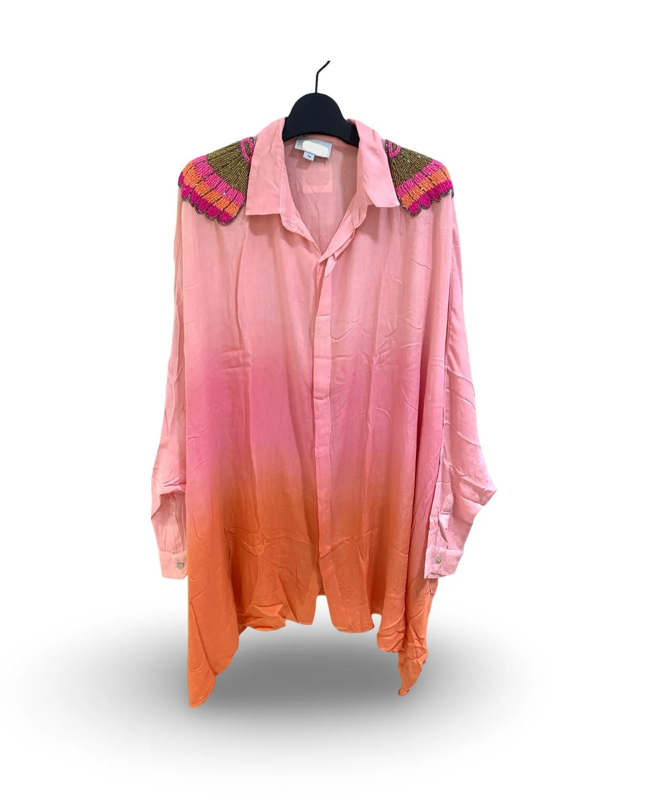 Oversized Blouse Roze Dip Dye met prachtige embroiderie op de schouders. Deze blouse is verkrijgbaar in verschillende kleuren: roze, mint.