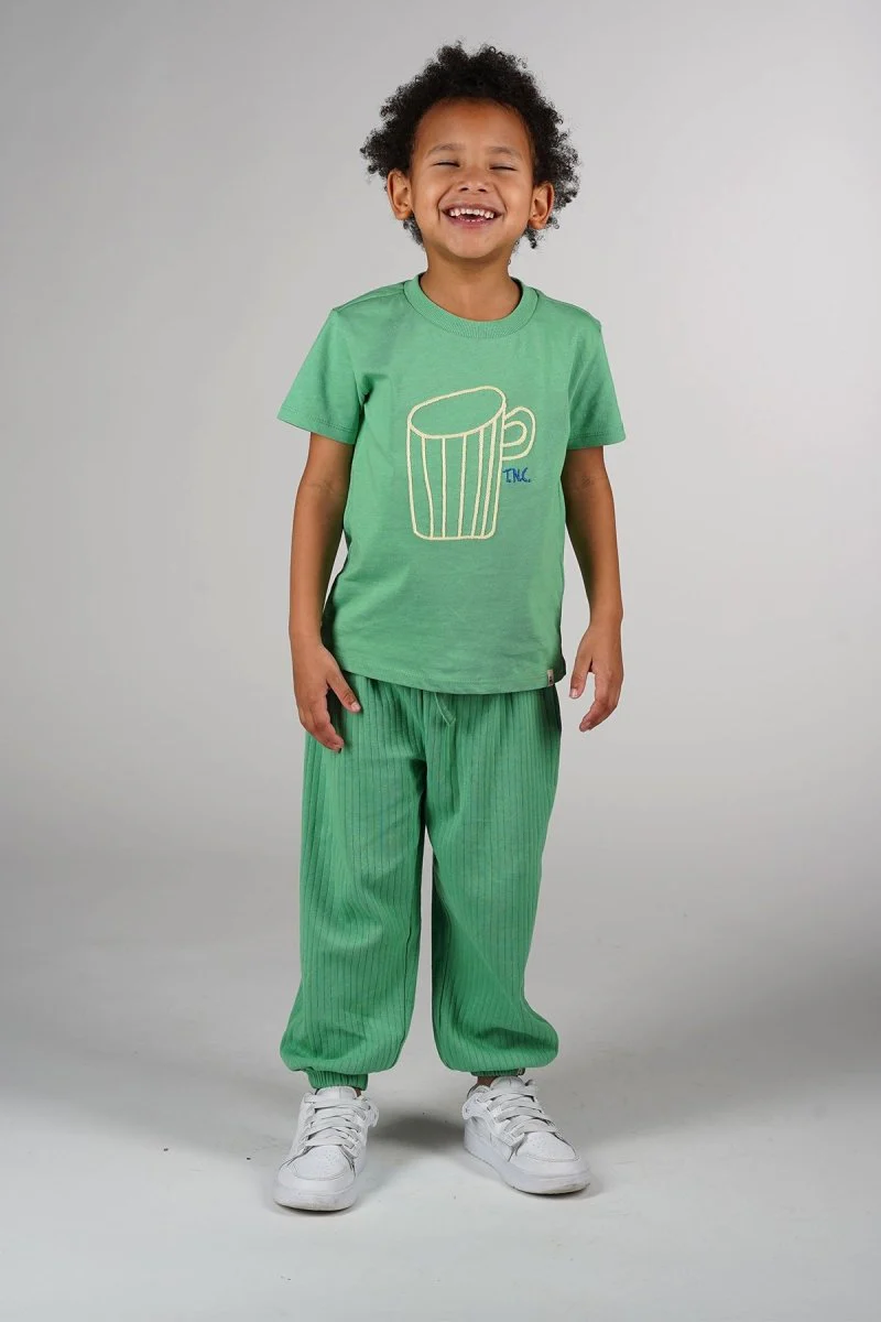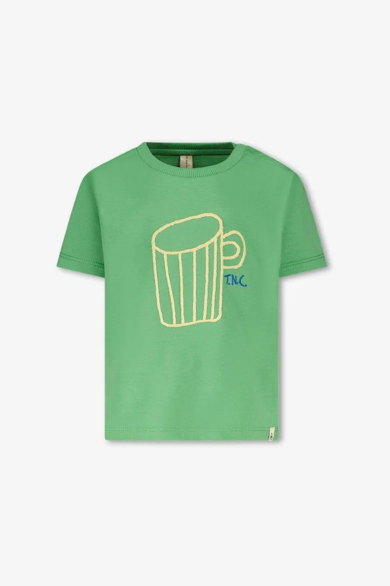 Voor kleine koffieliefhebbers in de dop! Dit groene T-shirt is een vrolijke, stoere keuze met een speelse twist. Het gele borduursel van een koffiekopje op de borst geeft een leuke, unieke touch die zeker in de smaak zal vallen. Duurzaam gemaakt. Dit chapter is in samenwerking met @kikirigters.