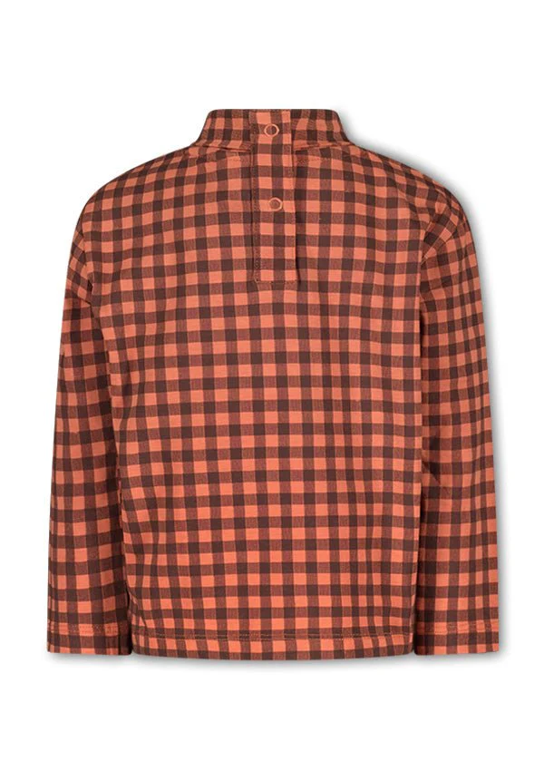 Check mate! De Bodil is een echte hit! Het leuke allover printje in bruin geeft dit item een leuk eigenwijs effect! Co-ord setjes zijn het helemaal dus draag Bodil met onze flare Ruby. Gemaakt van duurzamer katoen.