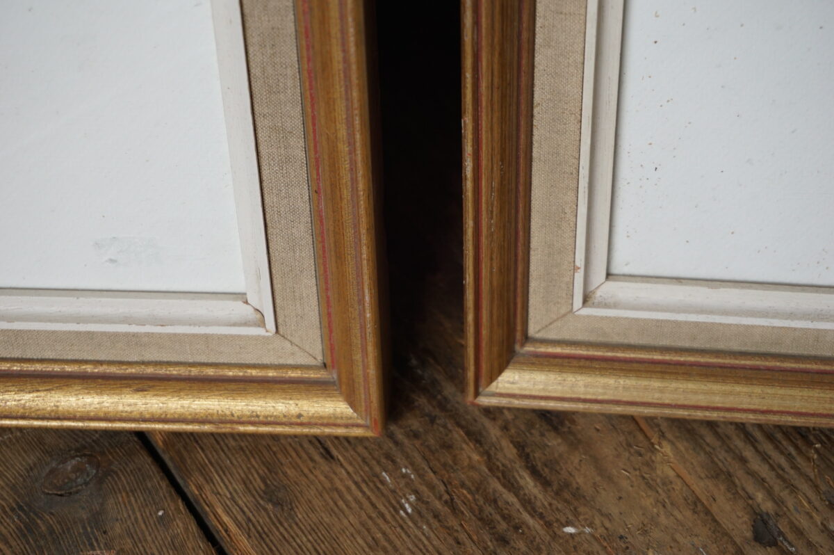 Brocante lijst met paspartoe en glas. Wij hebben er twee. De lijsten zijn gebruikt en hebben enkele gebruikssporen. Deze vallen niet echt op. De lijst is goud met creme. Afmeting totaal: 47.5 cm breed, 67.5 cm hoog en 3 cm diep. Paspartoe opening is 30 bij 30 cm. Binnenzijde lijst is 58.5 bij 38.5. Prijs is per stuk.