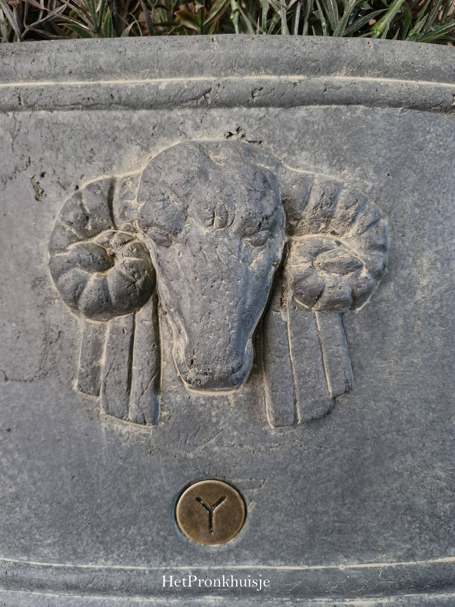 Aan de ene zijde is een ramskop, de andere zijde is glad.