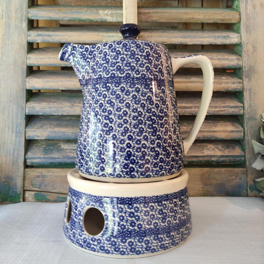 CA E71-F98-2546x Bunzlau Premium Koffie-, theepot 1Liter met Stove 15cm MidnightBlue