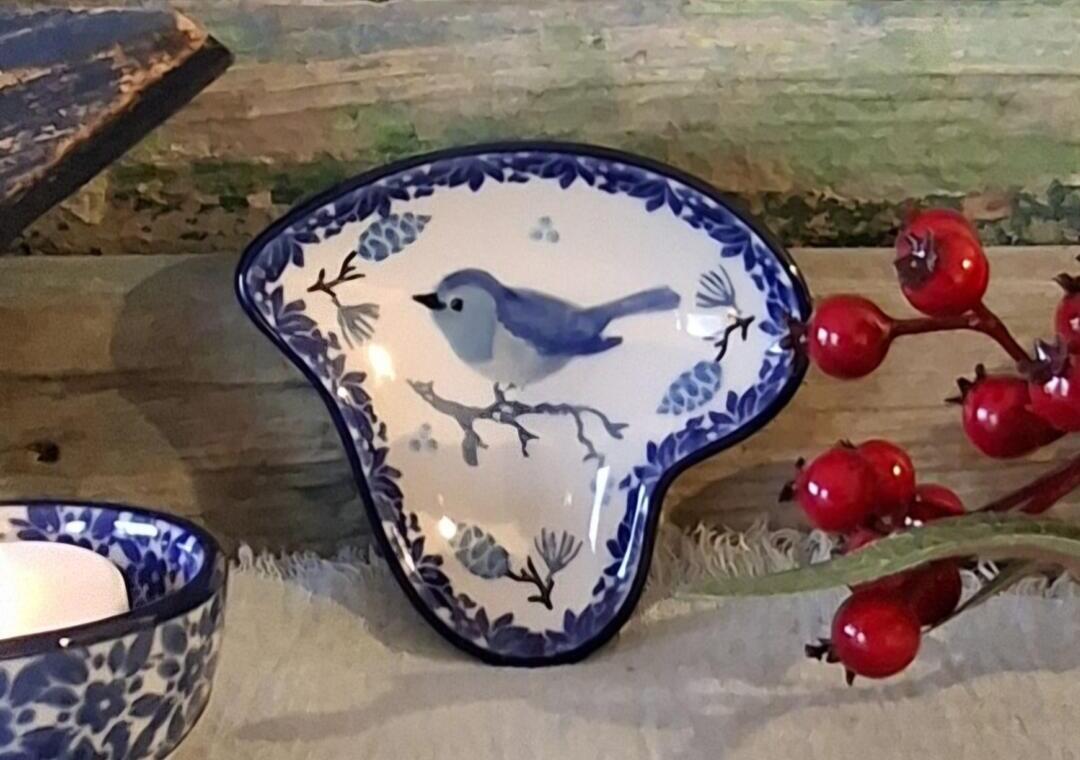 CA G62-3289x Bunzlau Spoonrest/theetipje Chickadee by Teresa Liana