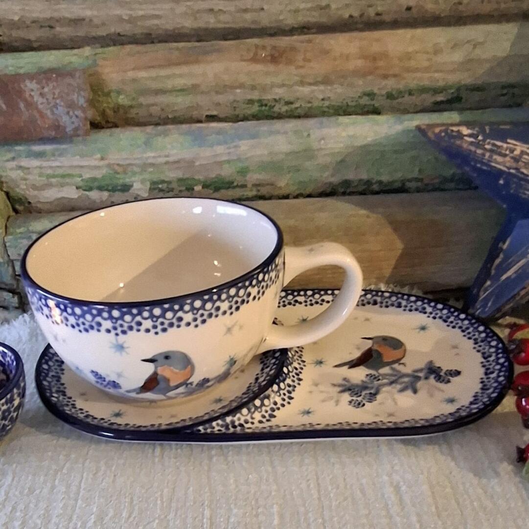 Home / Mokken en bekers / CA G89-G90-3292x Bunzlau Cappuccinomok, soepkom met schotel BlueBird by Karolina Sliwinska