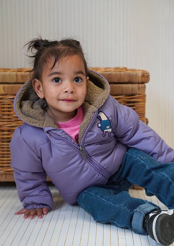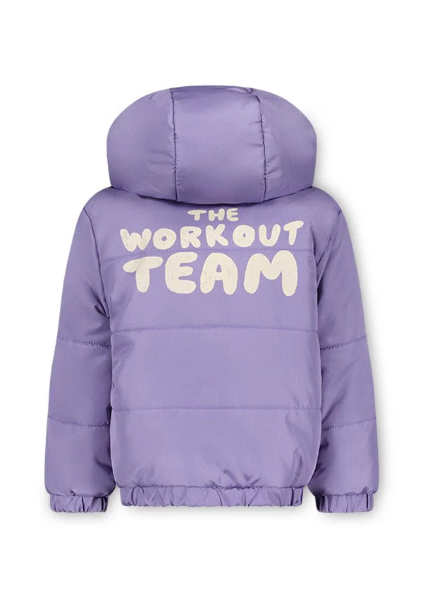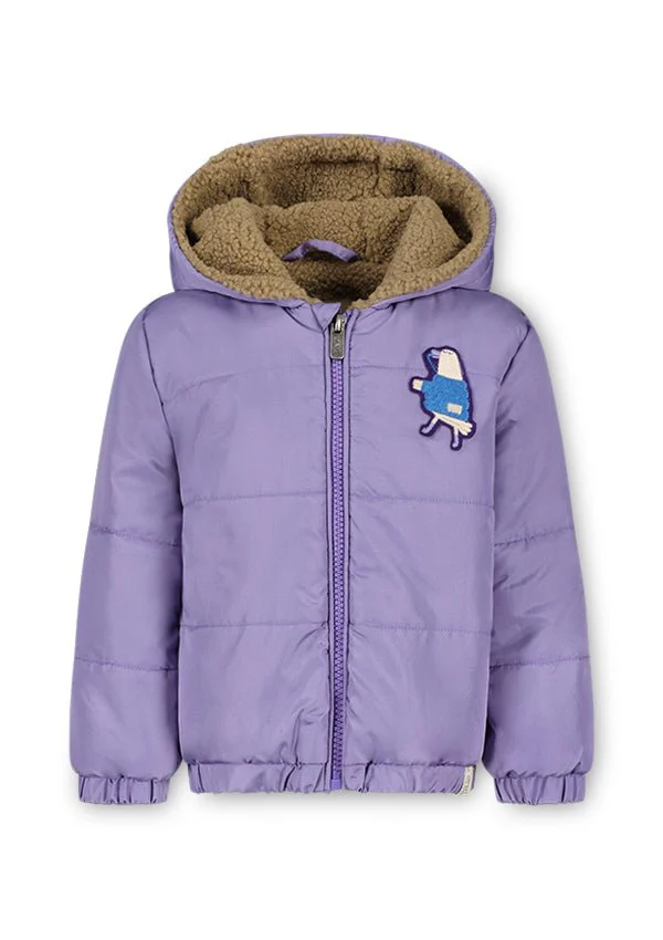 Heerlijk warm is deze fijne Cody jacket! De paarse jas heeft een super coole print op de voorkant en aan de achterkant toffe typo. Een makkelijk jas met rits sluiting waardoor hij goed aan en uit te trekken is. Deze jas is perfect voor zowel de stoere boys als de cute girls!