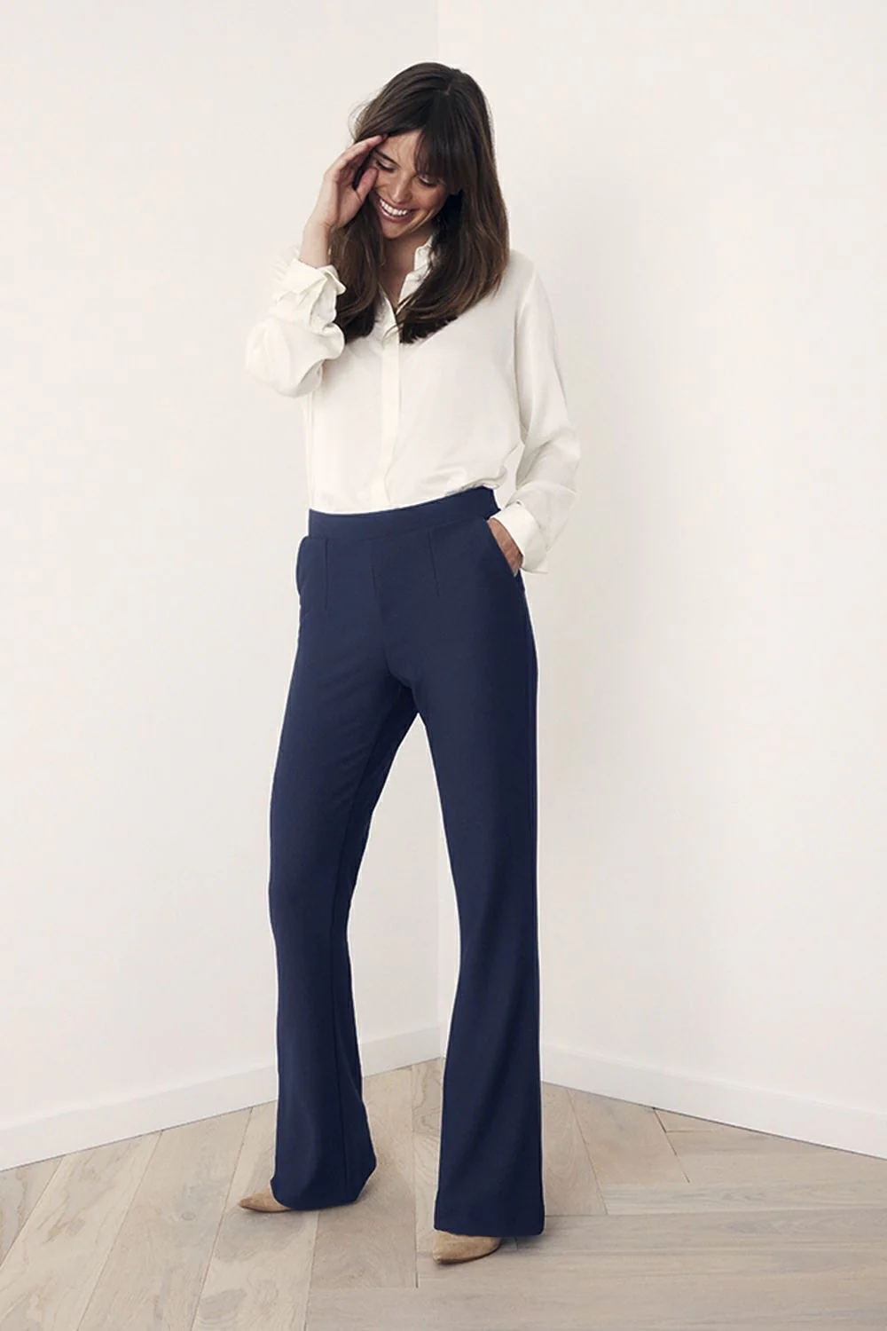 Deze broeken zijn ideaal voor de langere dames, maar zijn ook gemakkelijk korter te maken. Het model is 178 cm en draagt maat 36.