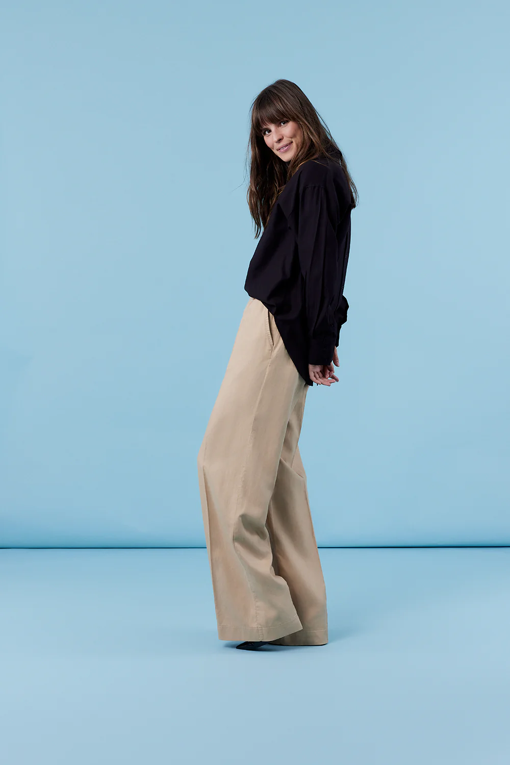 Zandkleurige Broek, Nola Wide Pants Uni Desert van de Corel Collectie.