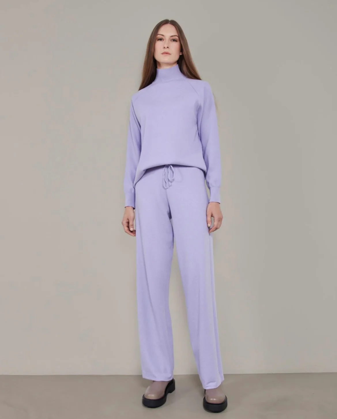 Corel Broek Olivia Lila is een fluweelzachte broek met wijde pijpen. Broek heeft een koordje in de band en nepzak klepjes op de achterkant. Van dezelfde serie is ook een trui, Corel Trui Sophia Sweater, verkrijgbaar in deze prachtige kleur lila.