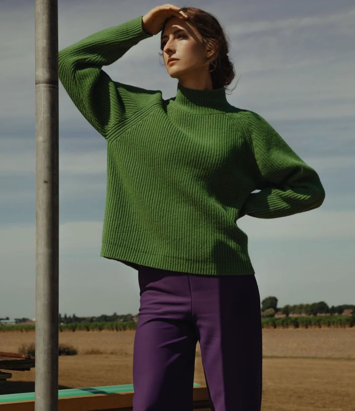 Groene Trui van Corel, Turtle Pullover Kayla Groen is een wijde gebreide trui met turtleneck en lange mouwen en boord.