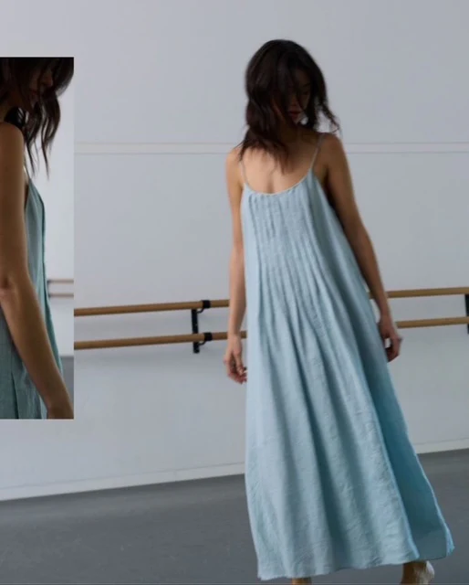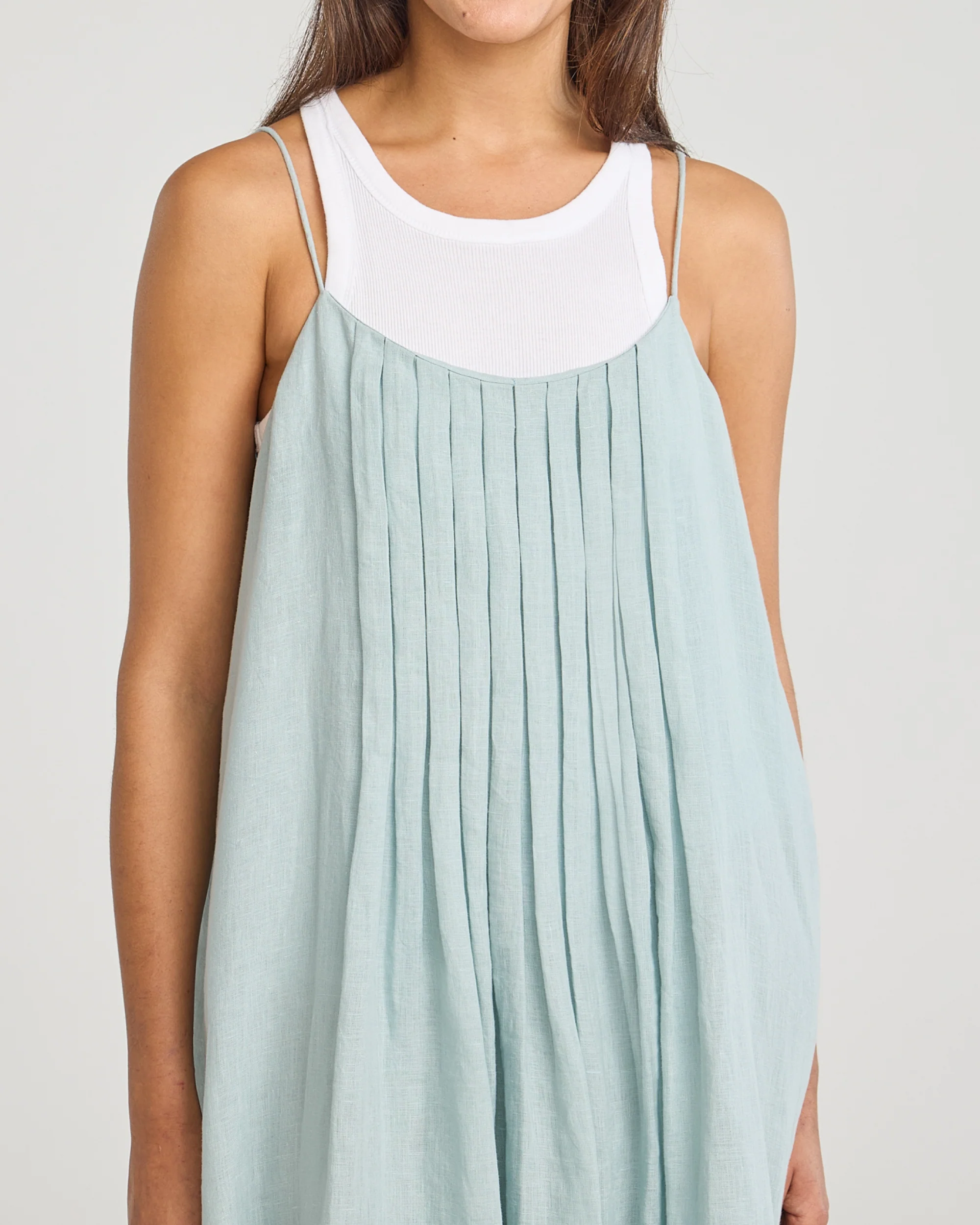 Aspen Dress Summer Blue van Moment Amsterdam is een luchtige zomerjurk met plooitjes van 100% linnen met spaghetti bandjes. De ideale jurk voor een mooie zomerdag.