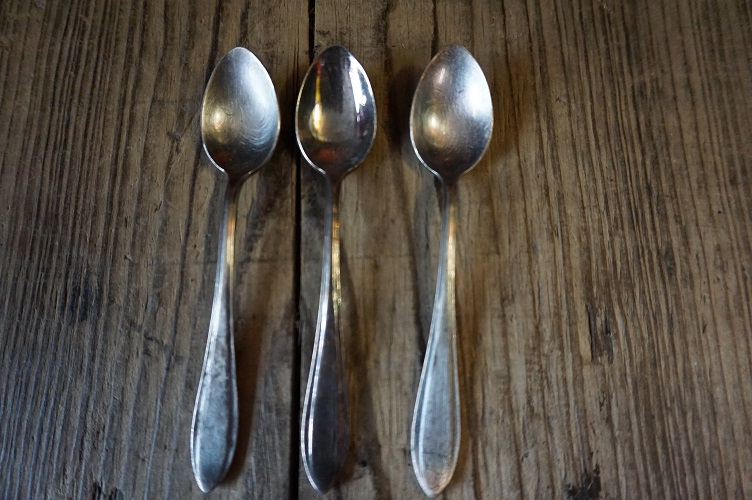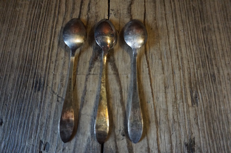 Drie oude theelepeltjes van het merk Nieuwpoort. Ongeveer 11.5 cm lan en 2 cm breed.