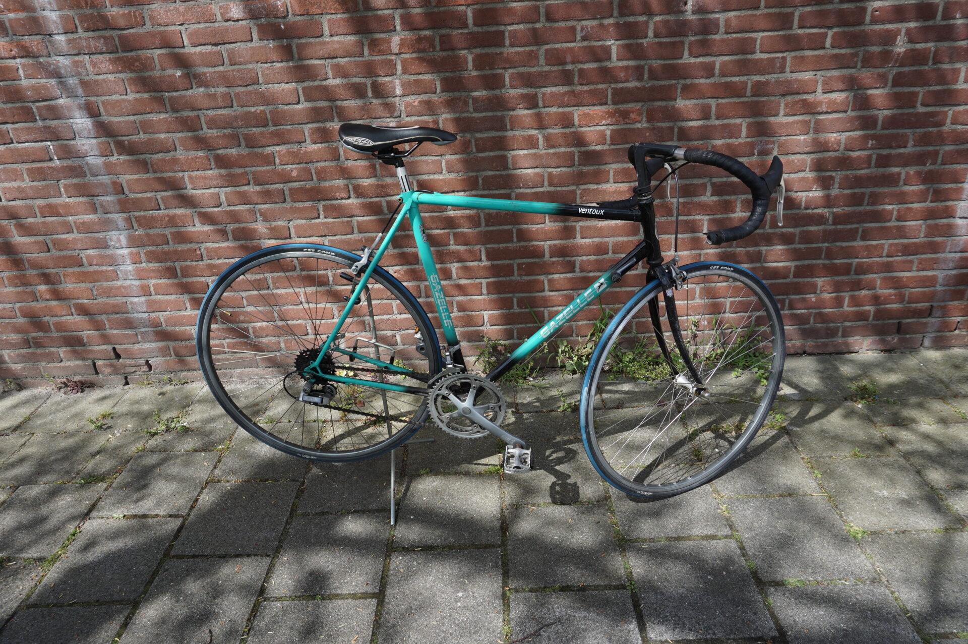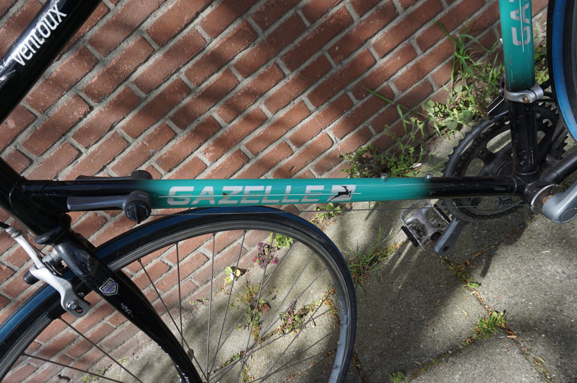 Vintage racefiets van het merk Gazelle Ventour. Ooit gekocht bij Jan Verdoes Den Helder. Framemaat is 58 cm.