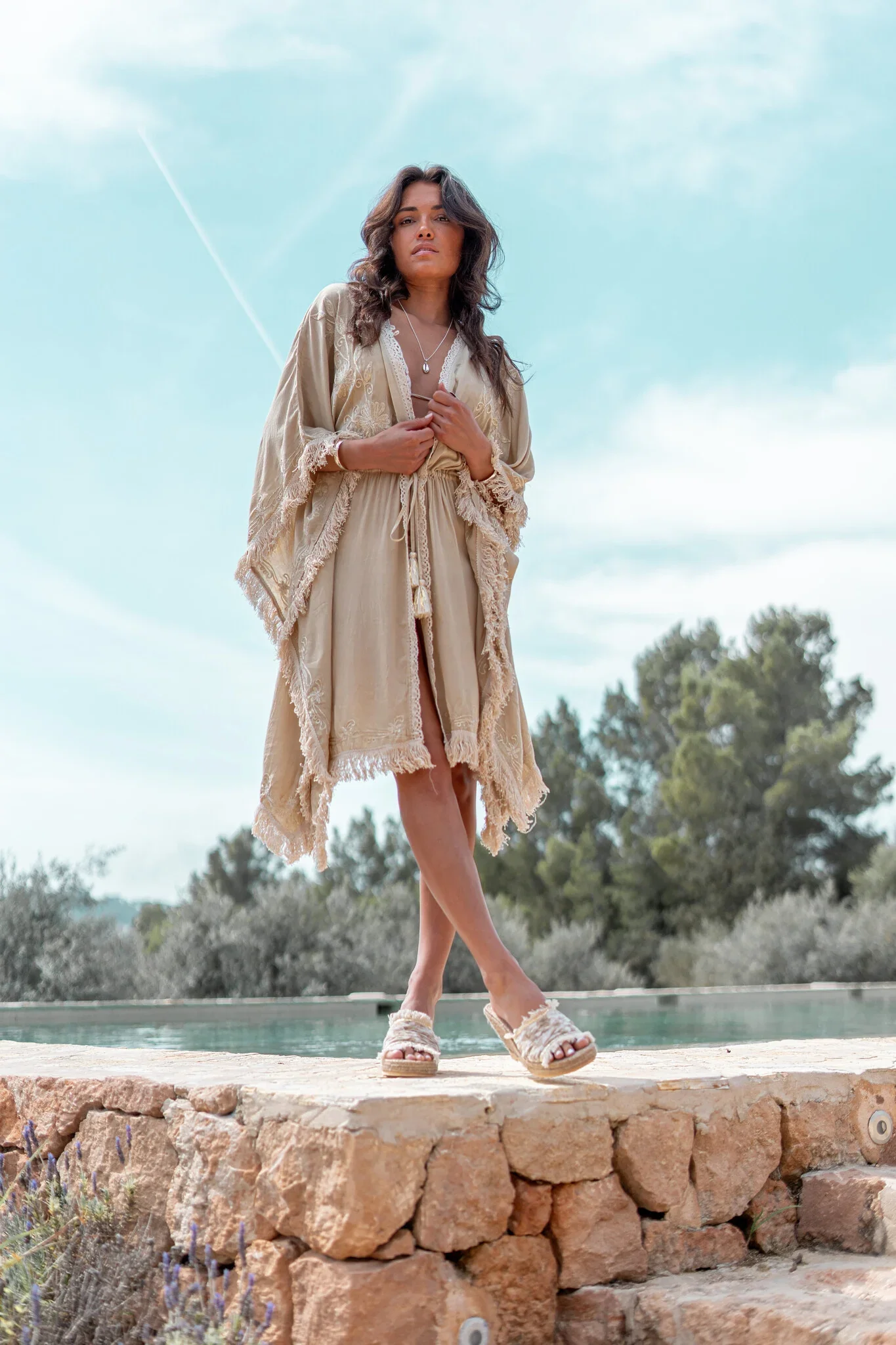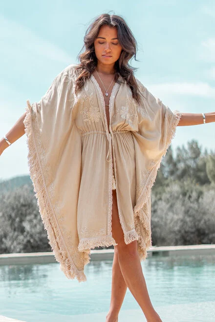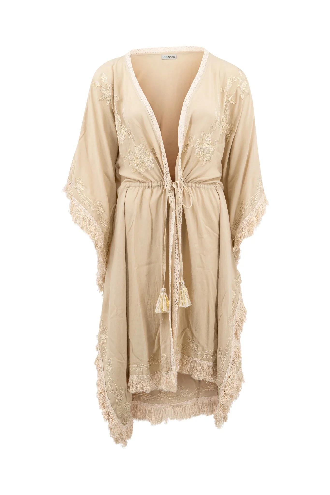 ibzmode Short Kimono Fringe Sand/ Ecru Gold