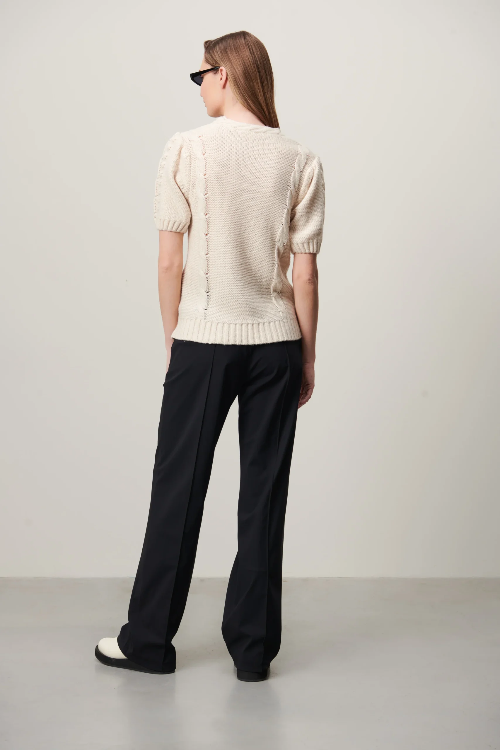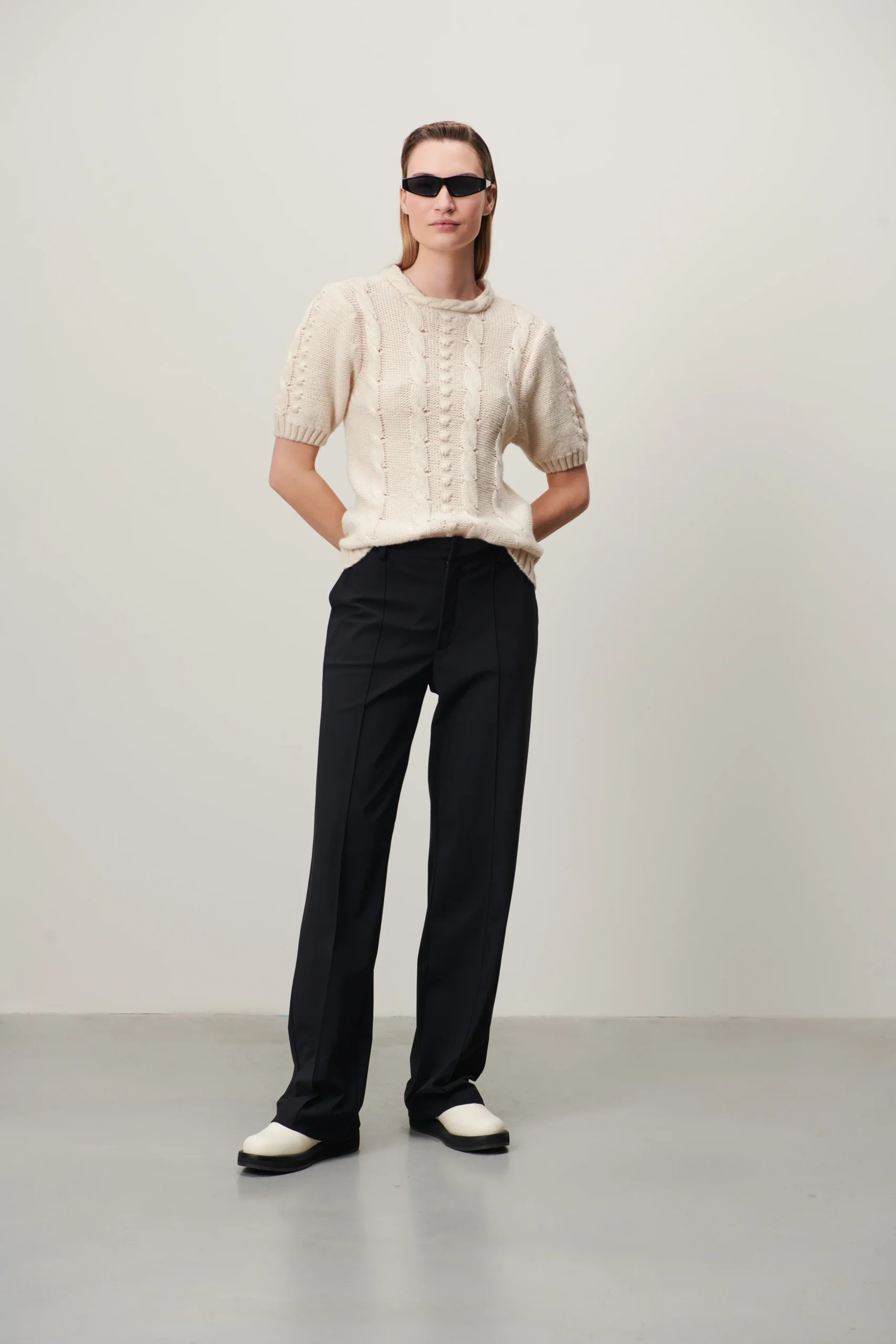 Travelkwaliteit, Pants Tamar is een nette lange broek met rechte pijpen. Broek heeft een knoop en rits om te sluiten, heeft lussen voor een ceintuur en paspel zakken op de achterkant.