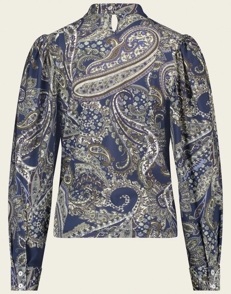 Top Camila UP62226045 is een top met Paisley print, heeft lange mouwen met boord en knoopjes. De hals heeft een kleine opstaande kraag en wordt aan de achterkant gesloten met een knoopje. Deze top/blouse van Jane Lushka is van de bekende travelstof.