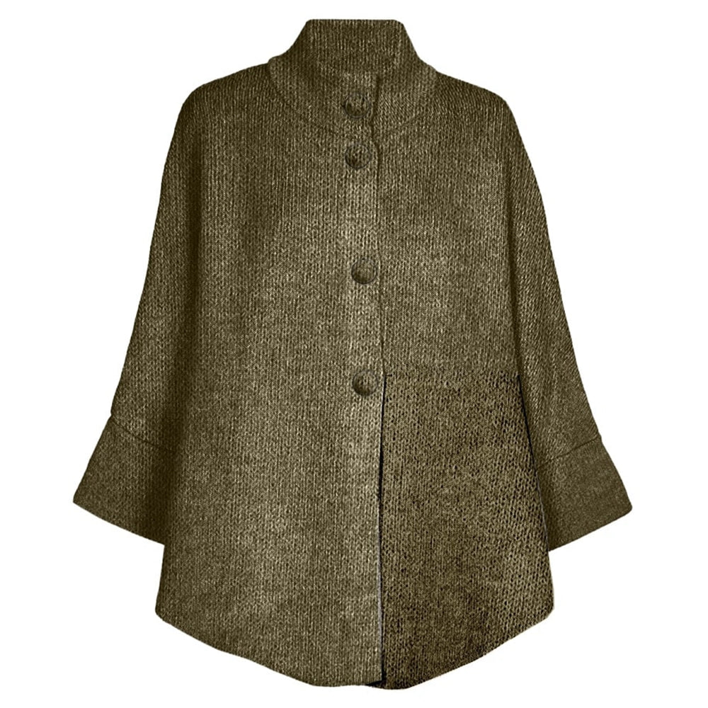 Breid je garderobe uit met CYCLEUR de LUXE Poncho Jas MARIE. Deze korte poncho van Cycleur de Luxe biedt zowel stijl als sportiviteit. Deze poncho heeft olijfgroen als basiskleur met beige accenten en is vervaardigd van een luxe mix. Met een eigentijdse kraag en beklede knopen is deze poncho ook als trui te dragen.