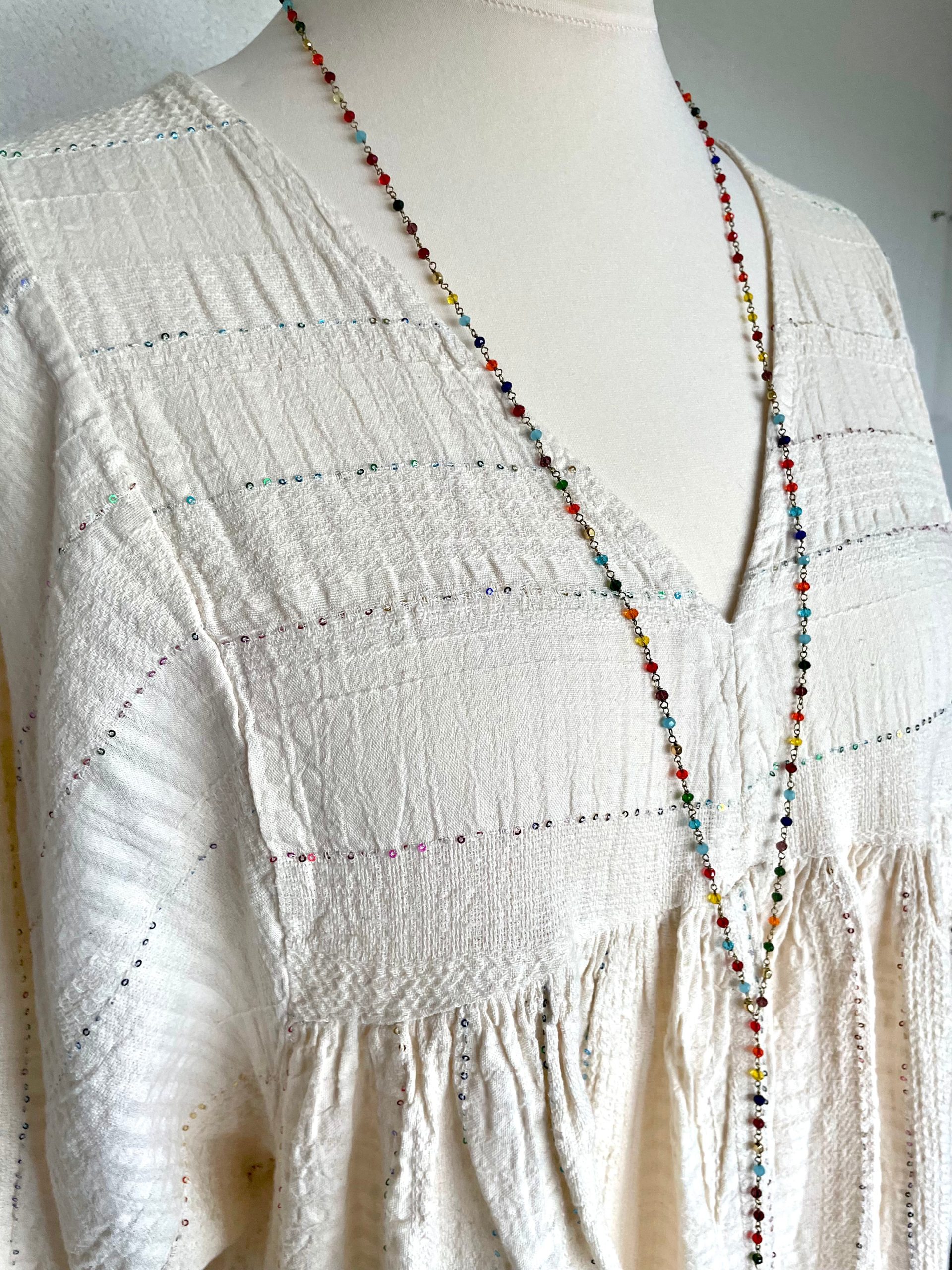 Jurk Maxi Wafelkatoen Paillet Beige