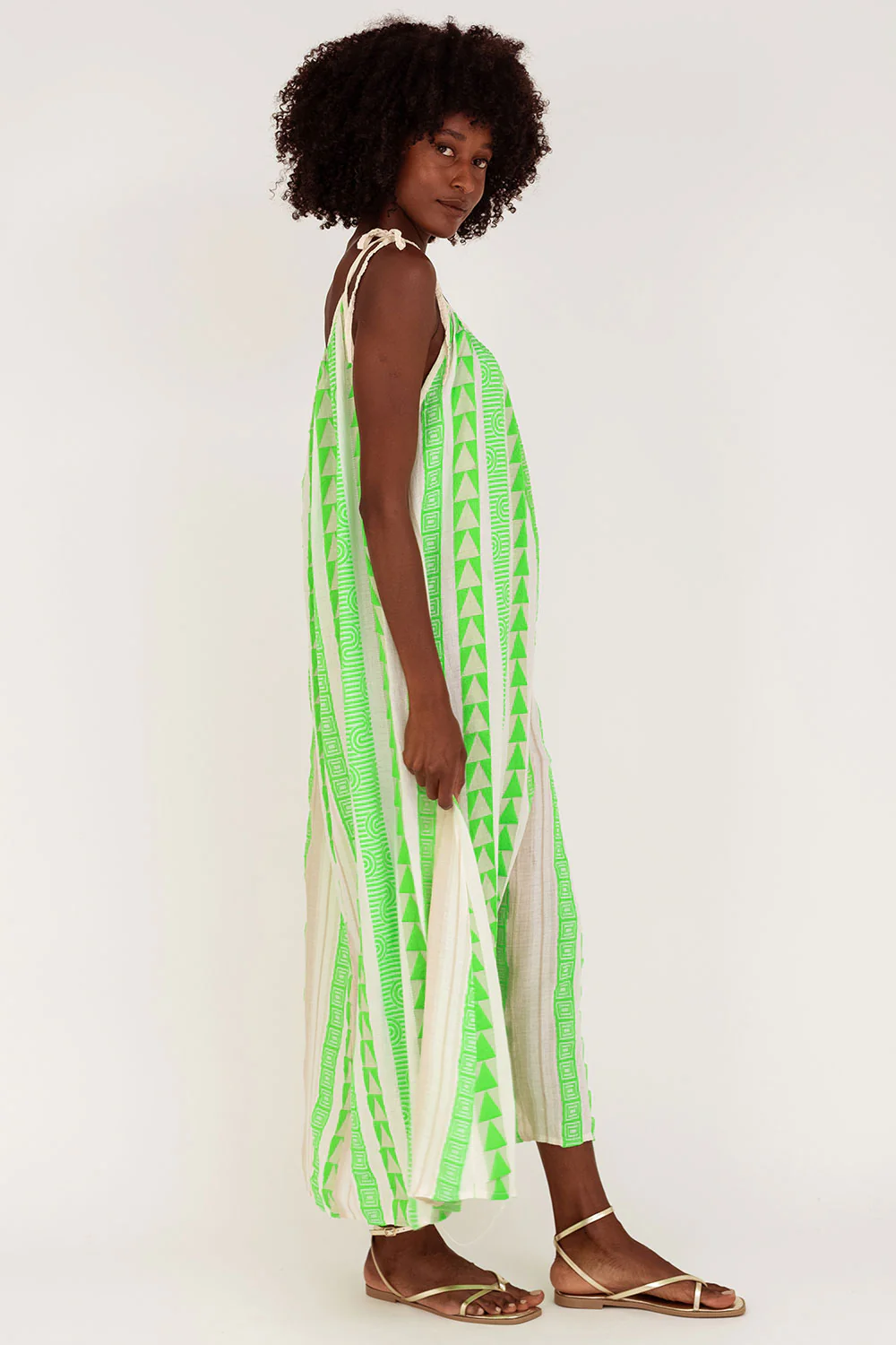 Jurk Aztec Zwart/Roze is een maxidress met verstelbare spaghetti bandjes.