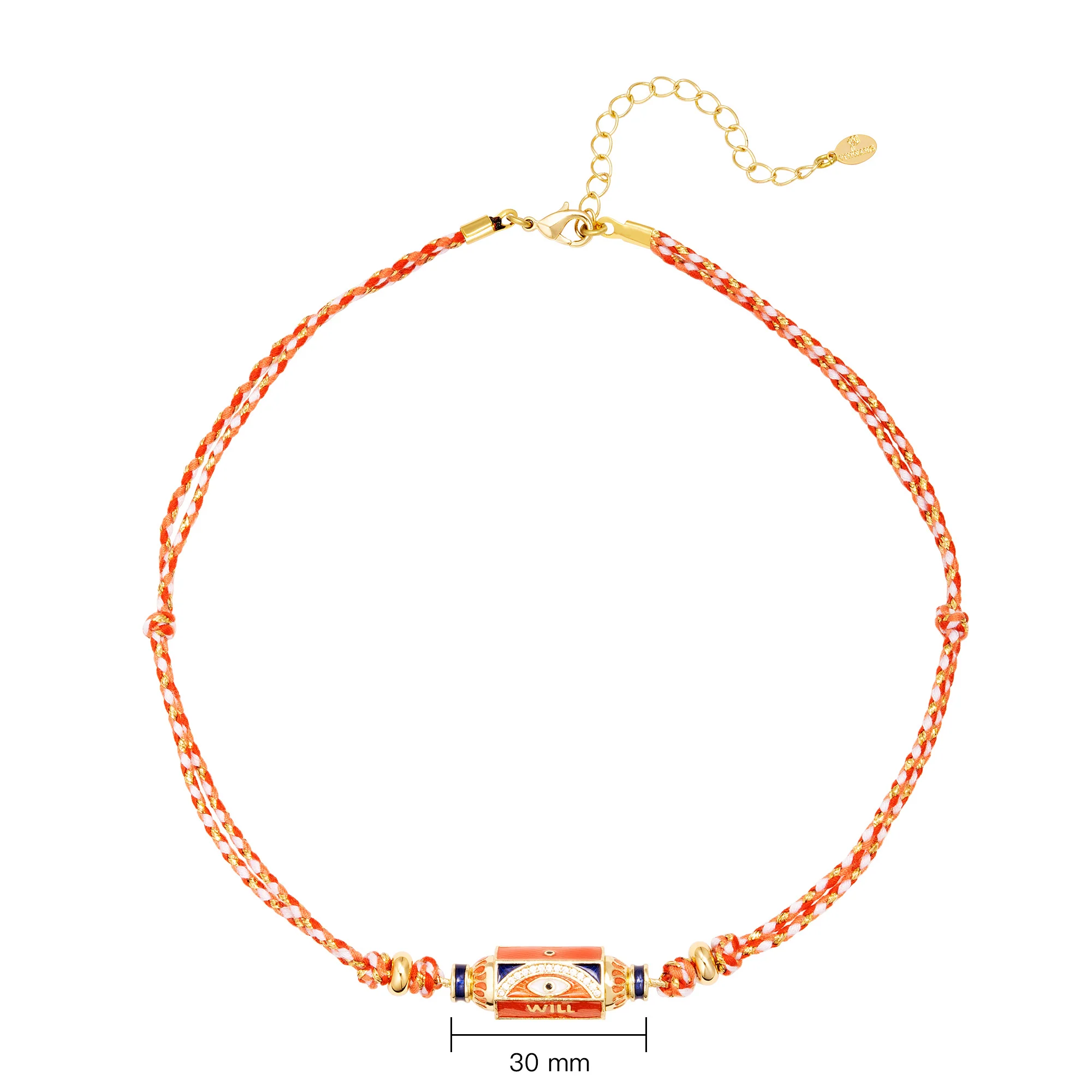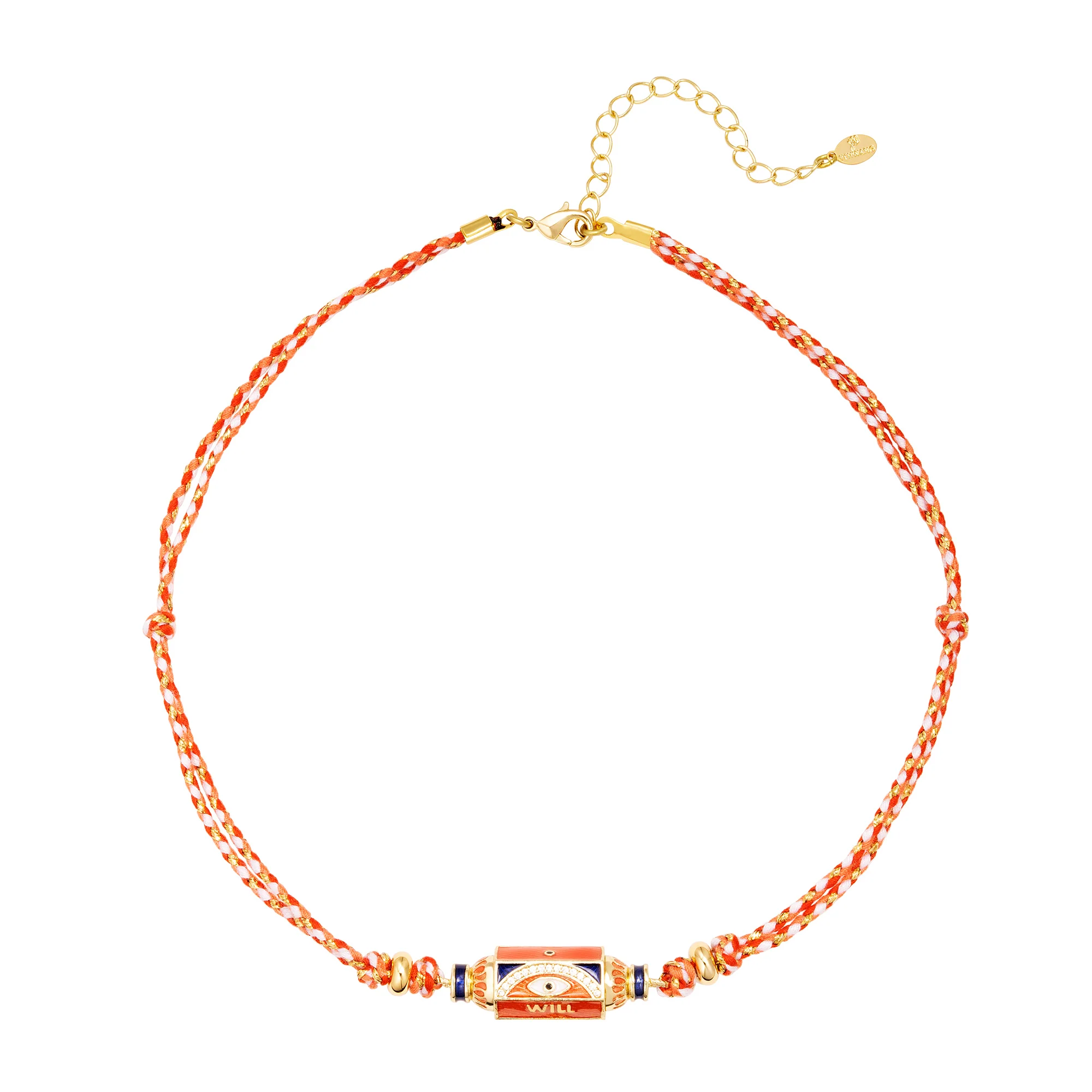 Ketting Lucky Oranje. Wat een geweldig leuke ketting is dit, deze ketting heeft als hanger een geluks kraal. Deze ketting is verkrijgbaar in verschillende kleuren: Oranje, Multicolor kraaltjes, Rood, Groen/blauw.