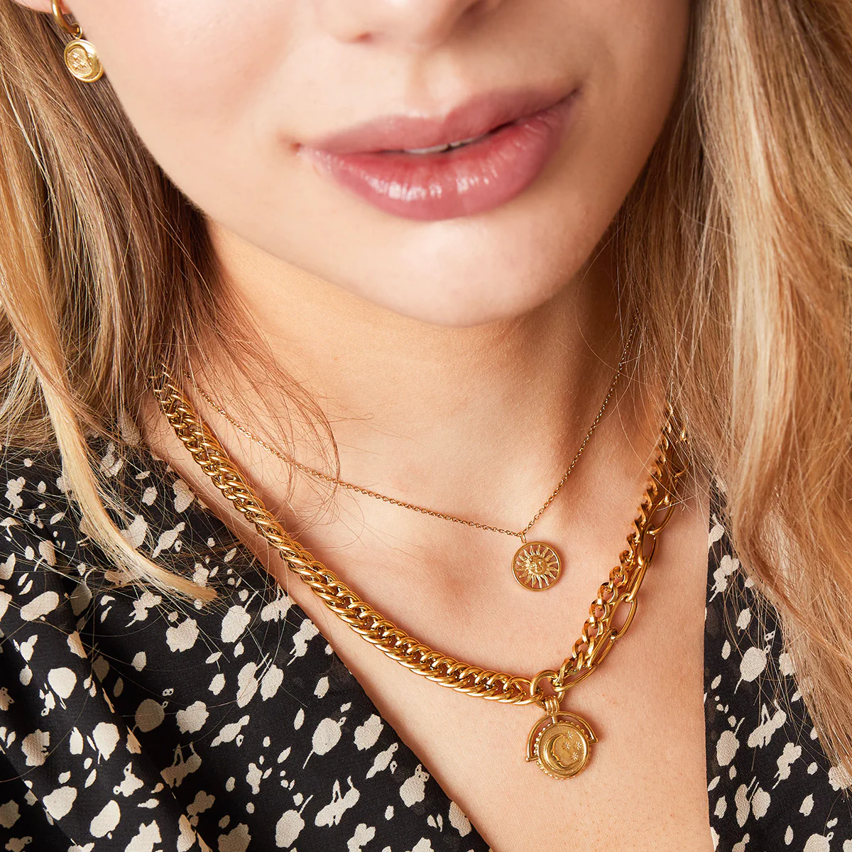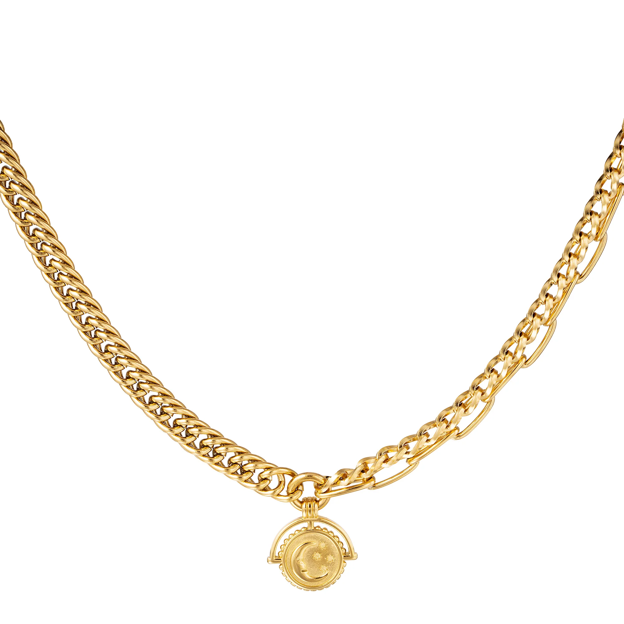 Ketting Luna heeft verschillende schakels en een mooie bedel. De Luna ketting heeft een luxe uitstraling en is verkrijgbaar in goud- en zilverkleurig.