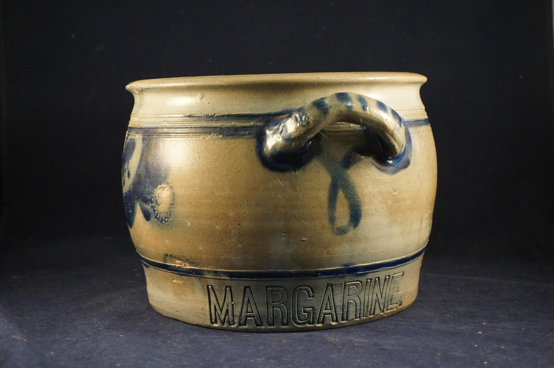 Keulse Margerine pot. Afmeting: ongeveer doorsnede van 25 cm en 17.5 cm hoog
