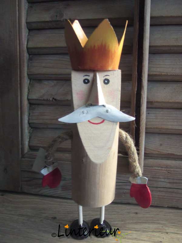 Beeld van massief hout en metalen kroon.