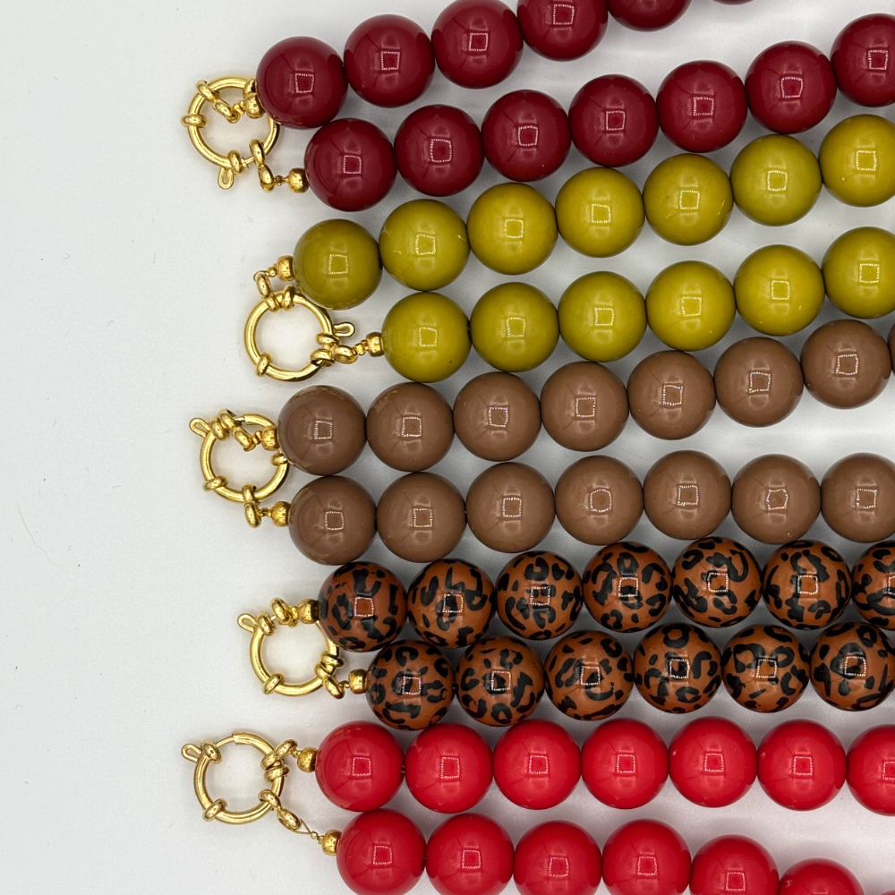 Met een lengte van ca. 44 cm (en 48 cm inclusief boeislot) valt de ketting prachtig rond de hals. Niet te kort, niet te lang – precies goed om op te vallen en tegelijk comfortabel te dragen. Verkrijgbaar in vijf kleuren, zodat er altijd een variant is die past bij jouw stijl, stemming of seizoen. Mix & match of wissel af, want één kleur is eigenlijk nooit genoeg.