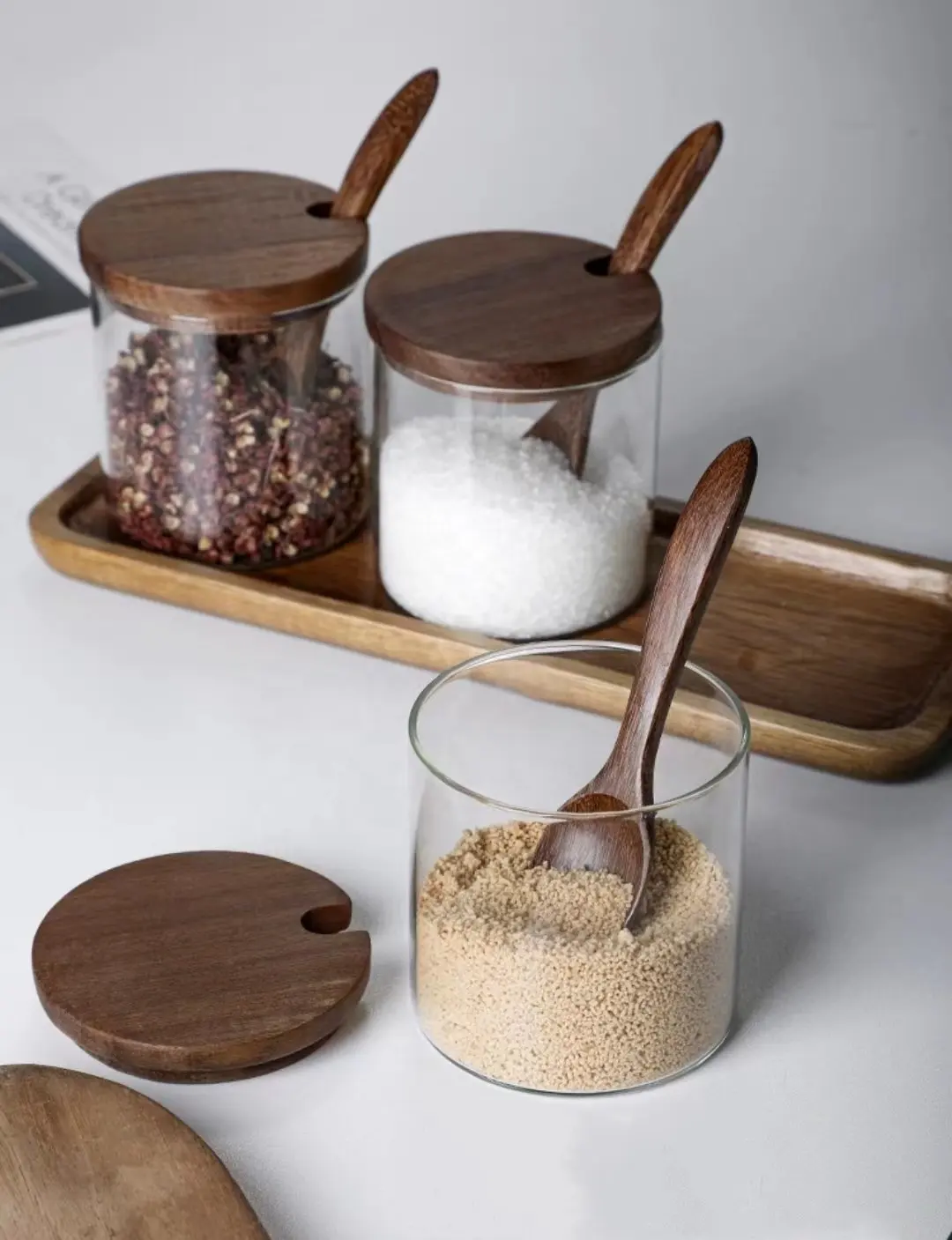Deze kruidenpotjes zijn werkelijk multifunctioneel! Niet alleen zijn ze perfect voor het opslaan van verschillende kruiden, maar je kunt ze ook gebruiken om je thee in te bewaren. De kruidenpotjes hebben een aantrekkelijk ontwerp, en met de bijgeleverde lepel hoef je tijdens het koken nooit meer naar een lepel te zoeken. De deksels en lepels zijn vervaardigd uit acaciahout en kunnen uitsluitend met een mild afwasmiddel worden gewassen.