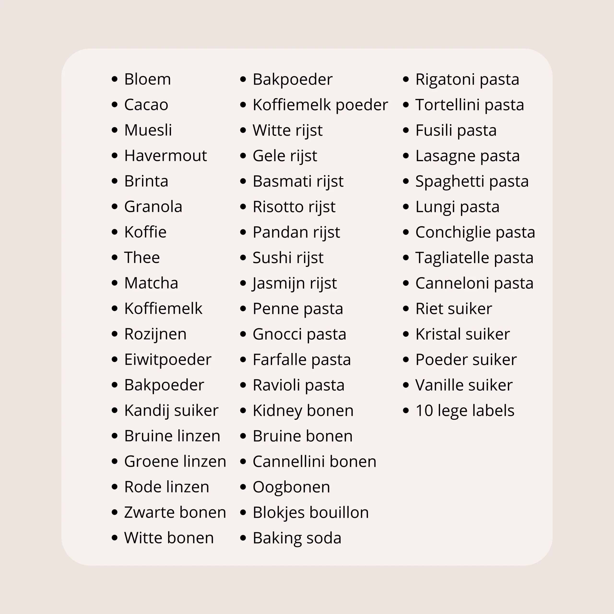Yes! Heb je je voorraadkast al op orde gemaakt, maar mist het nog dat éne puntje op de i? Met de labels van Beyondliving ziet jouw voorraadkast er nog strakker en georganiseerder uit. Dit wil je toch?!