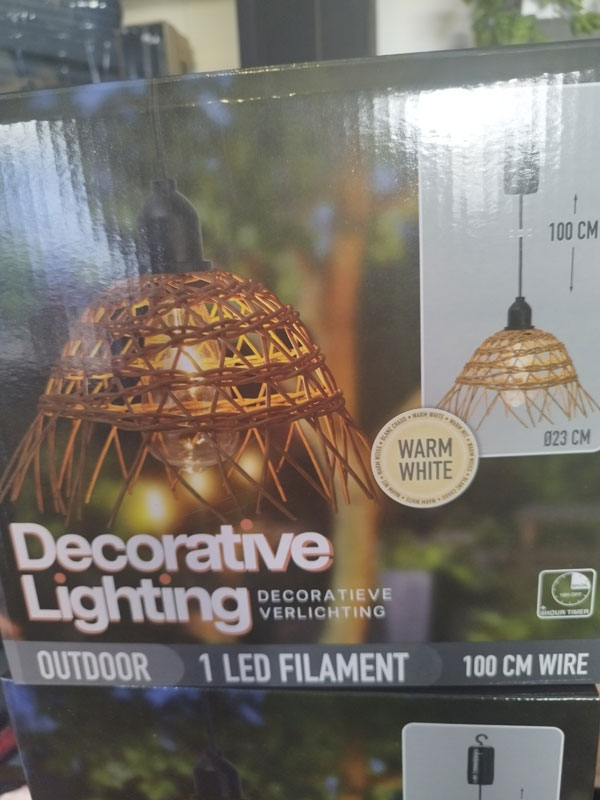 Op 4 aa batterijen en timer. Gemakkelijk ergens buiten op te hangen. Ook voor binnen.