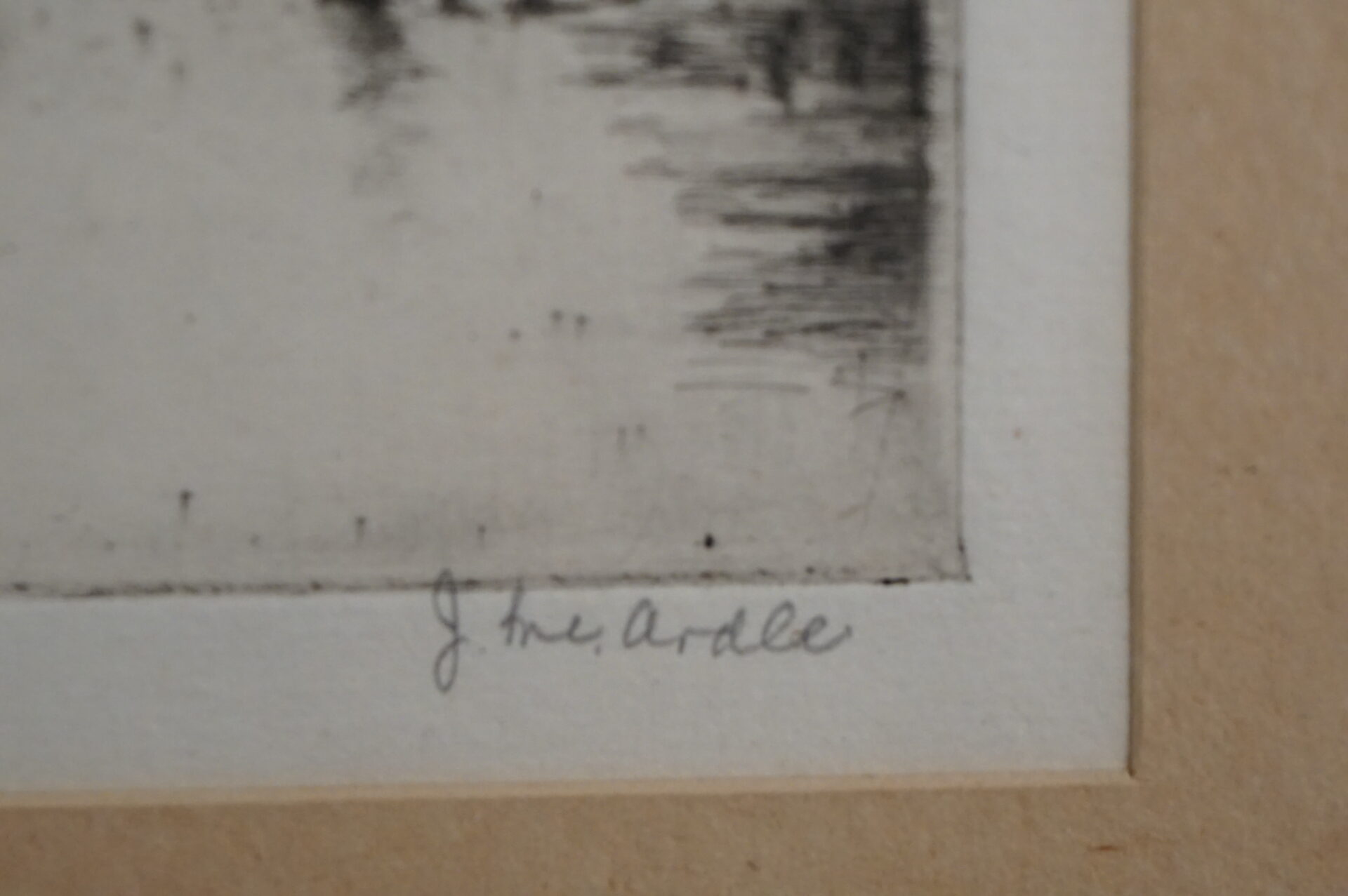 Ingelijst door lijstenmaker met glas. Geschatte periode 1950.