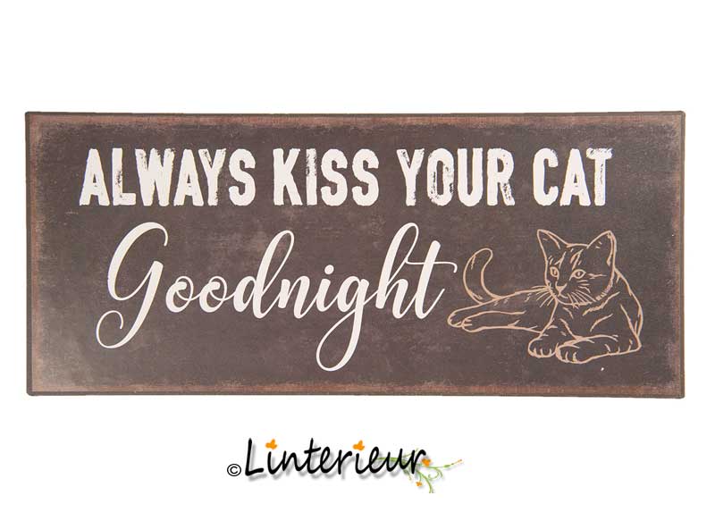 Metaalbord always kiss your cat goodnight.