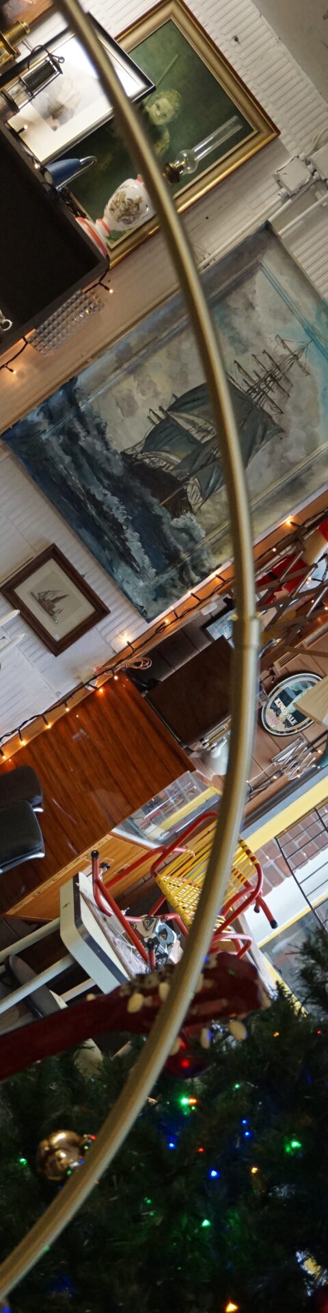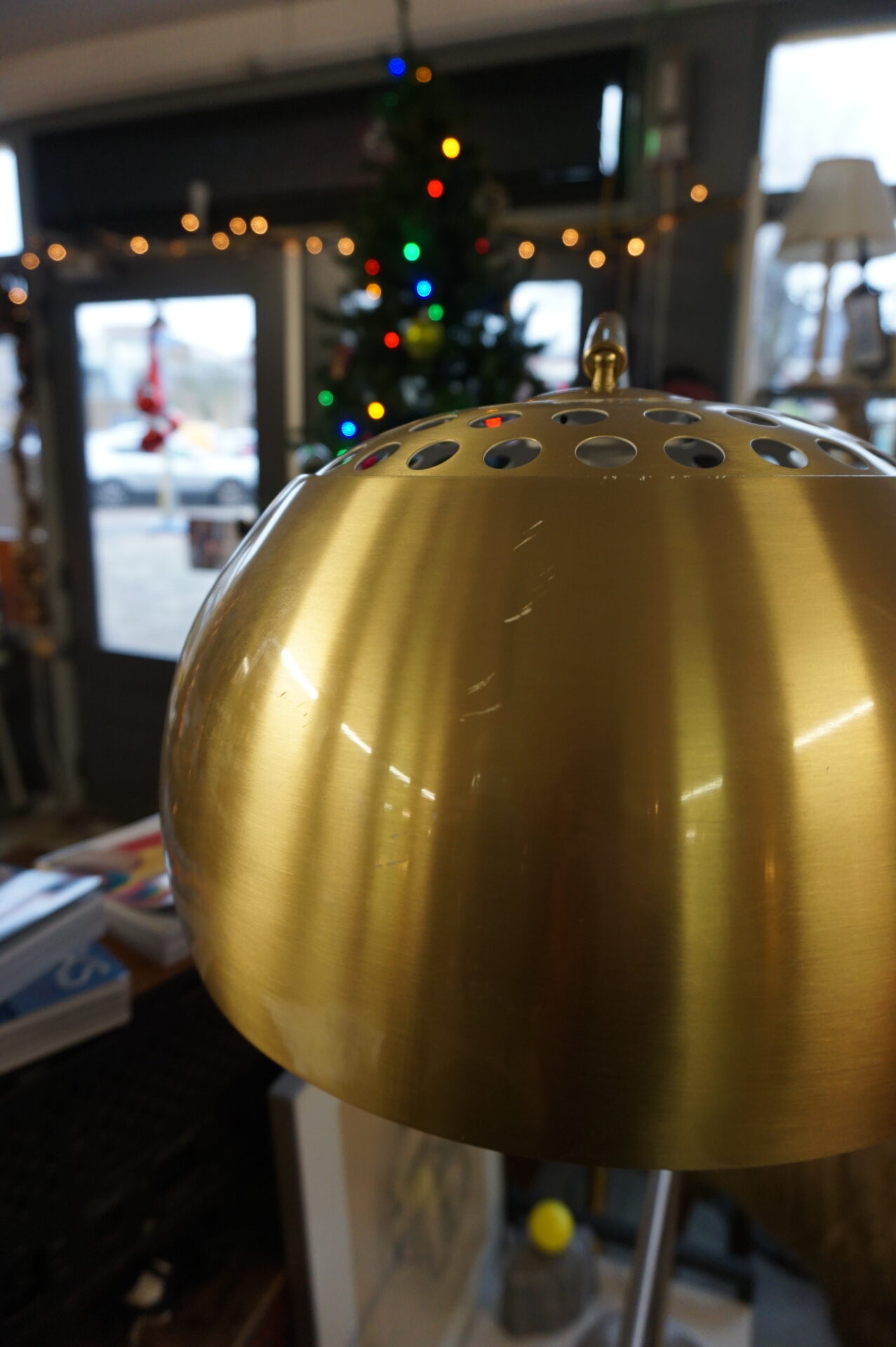 De lamp is tweedehands en heeft bij de verhuizing kleine schade aan de kap opgelopen, maar deze kan je draaien in de gewenste richting om de kleine schade niet te zien.
