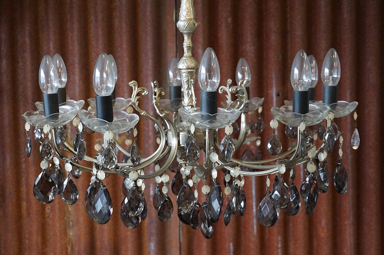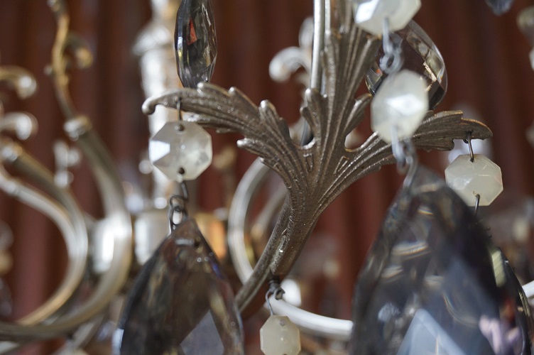 Home / verlichting / Metalen kroonluchter met gerookt glazen kristallen